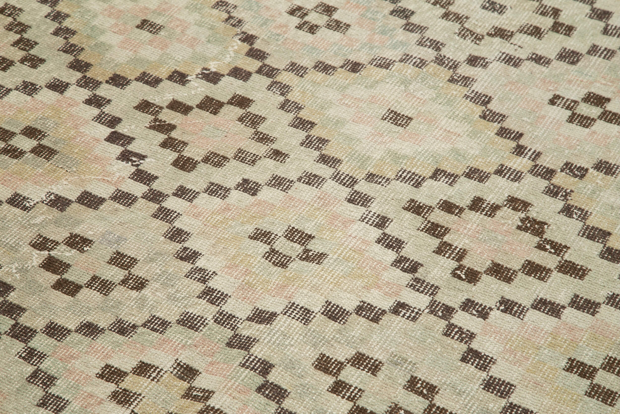 This handmade area rug is a checkered kilim beige cotton wool rug measuring 4'2''x8'6'', designed to add warmth and style to your living space. Crafted from a blend of natural fibers including soft cotton and durable wool, this vintage hand woven rug offers both comfort and longevity. The traditional kilim carpet features a flat weave floor covering that is perfect for those seeking a bohemian style rug with authentic Turkish wool carpet craftsmanship. Each hand knotted rug is carefully selected, cleaned, and washed using special techniques that neutralize and subtly alter the original colors, ensuring a unique beige living room rug that complements various interior designs.