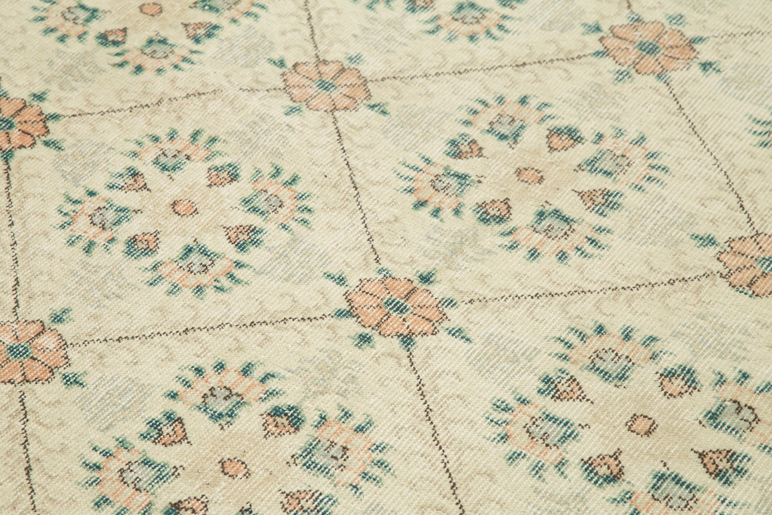 The durable cotton weave provides strength and longevity, while the soft wool floor covering offers warmth underfoot, making it ideal for high-traffic areas or cozy corners. This natural fiber carpet has been carefully selected, cleaned, and treated with special washing methods to neutralize original colors and brighten the subtle shades of the traditional Turkish rug. With its bohemian style appeal, this neutral beige rug complements a variety of interior decors while maintaining authenticity.