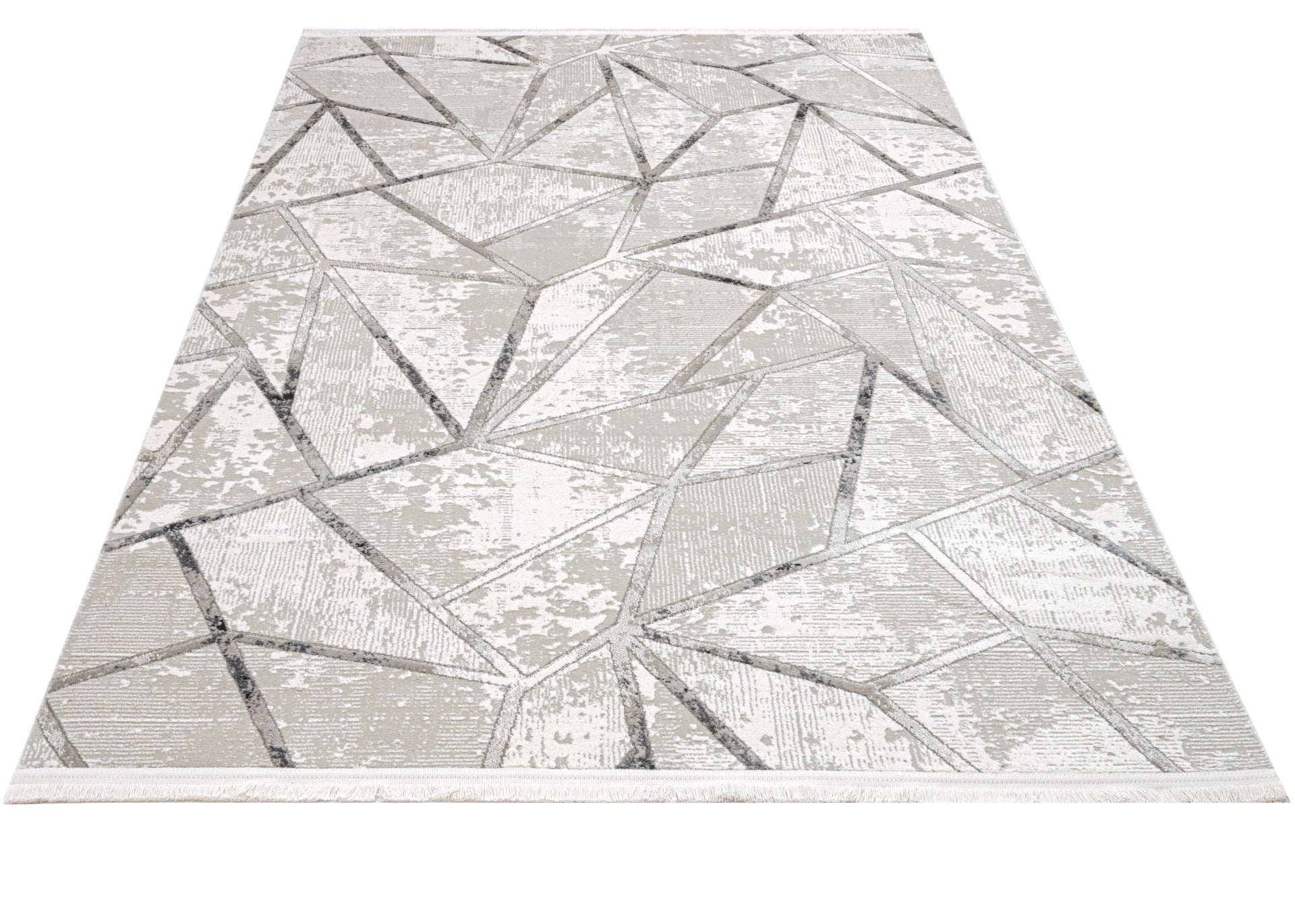 Grey Geometric Area Rug – Machine Made Cotton Base Rug With Acrylic Yarn