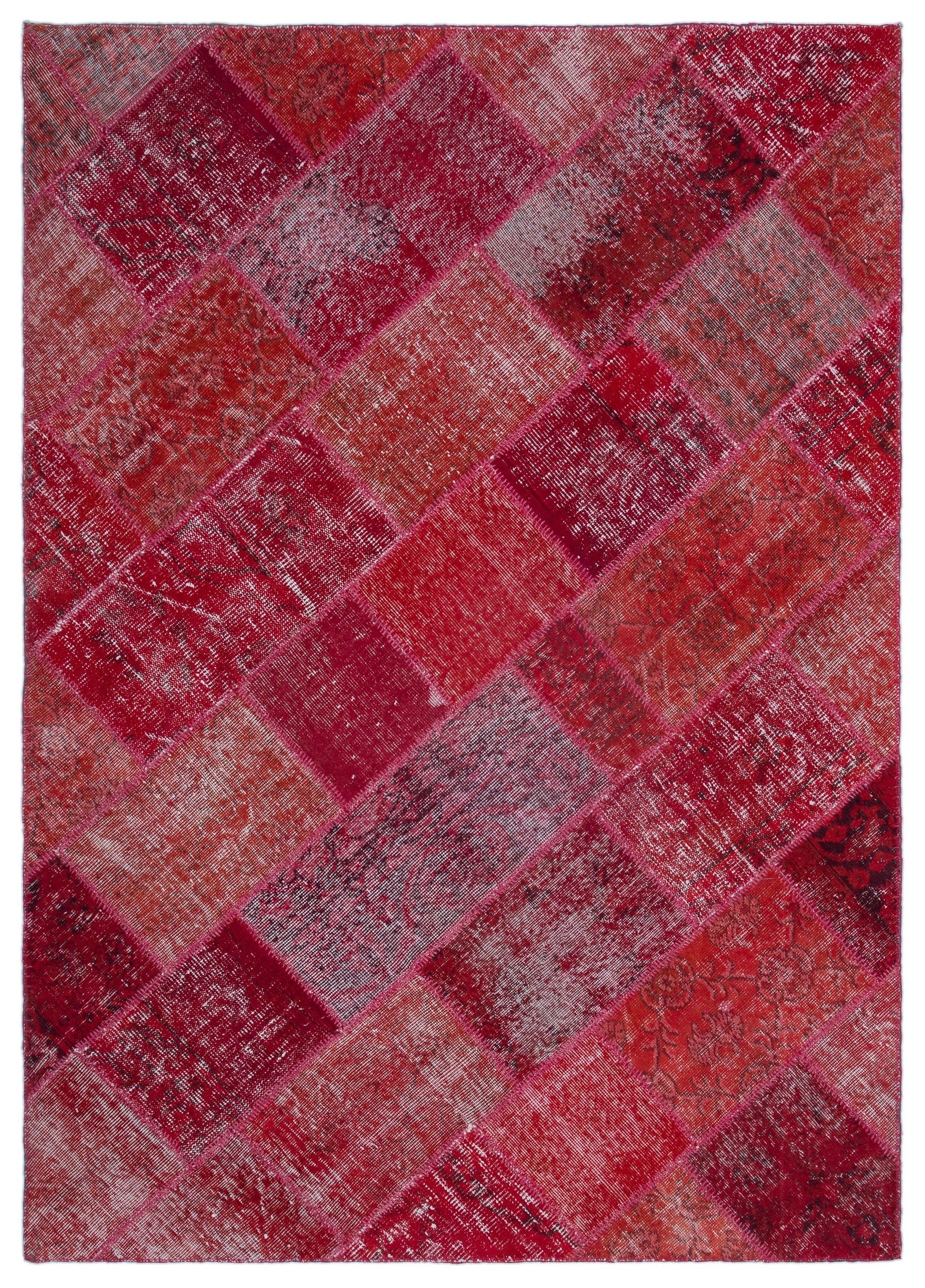 Iskece 22009 Red Patchwork Wool Handmade Area Rug 5'3" x 7'7"
