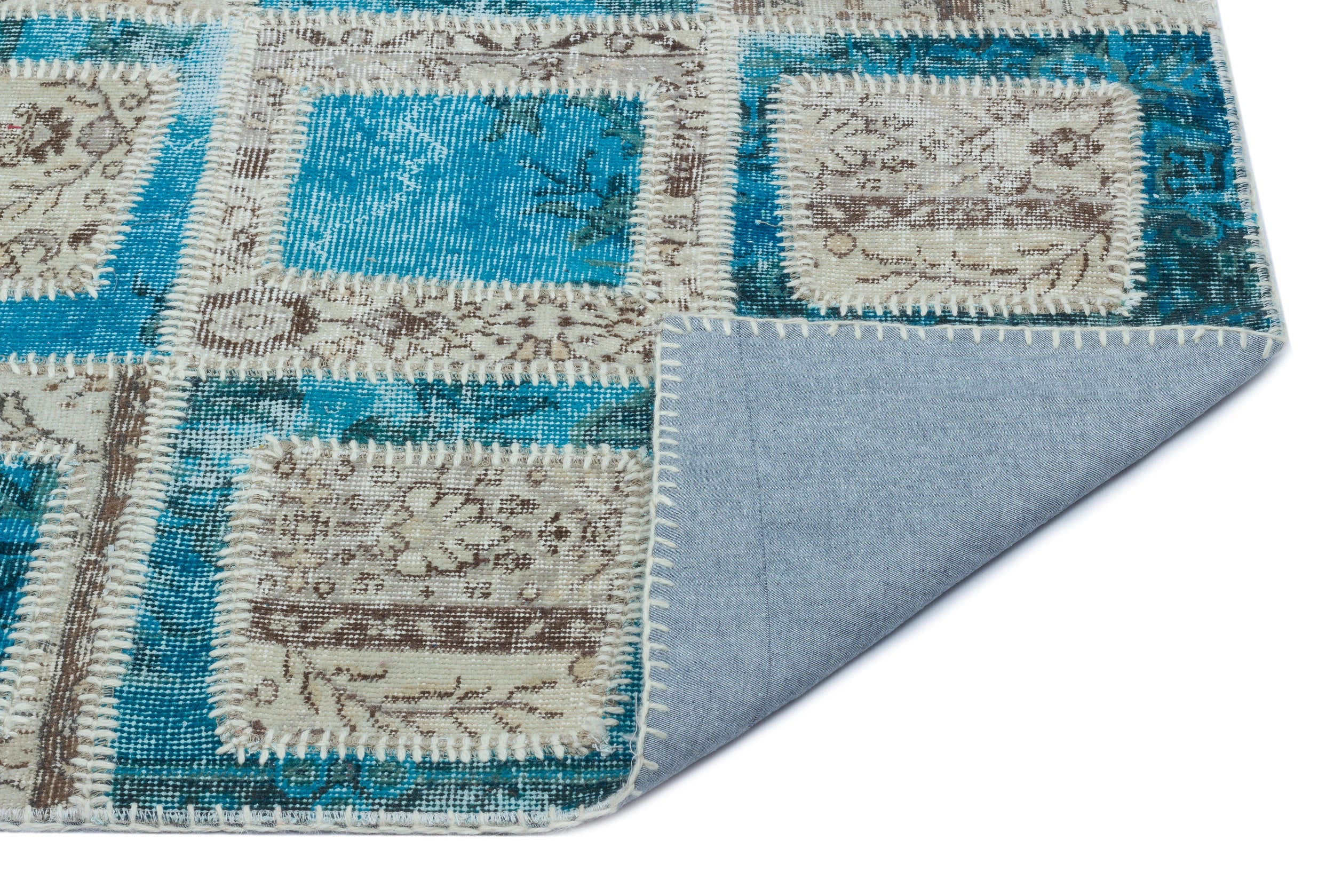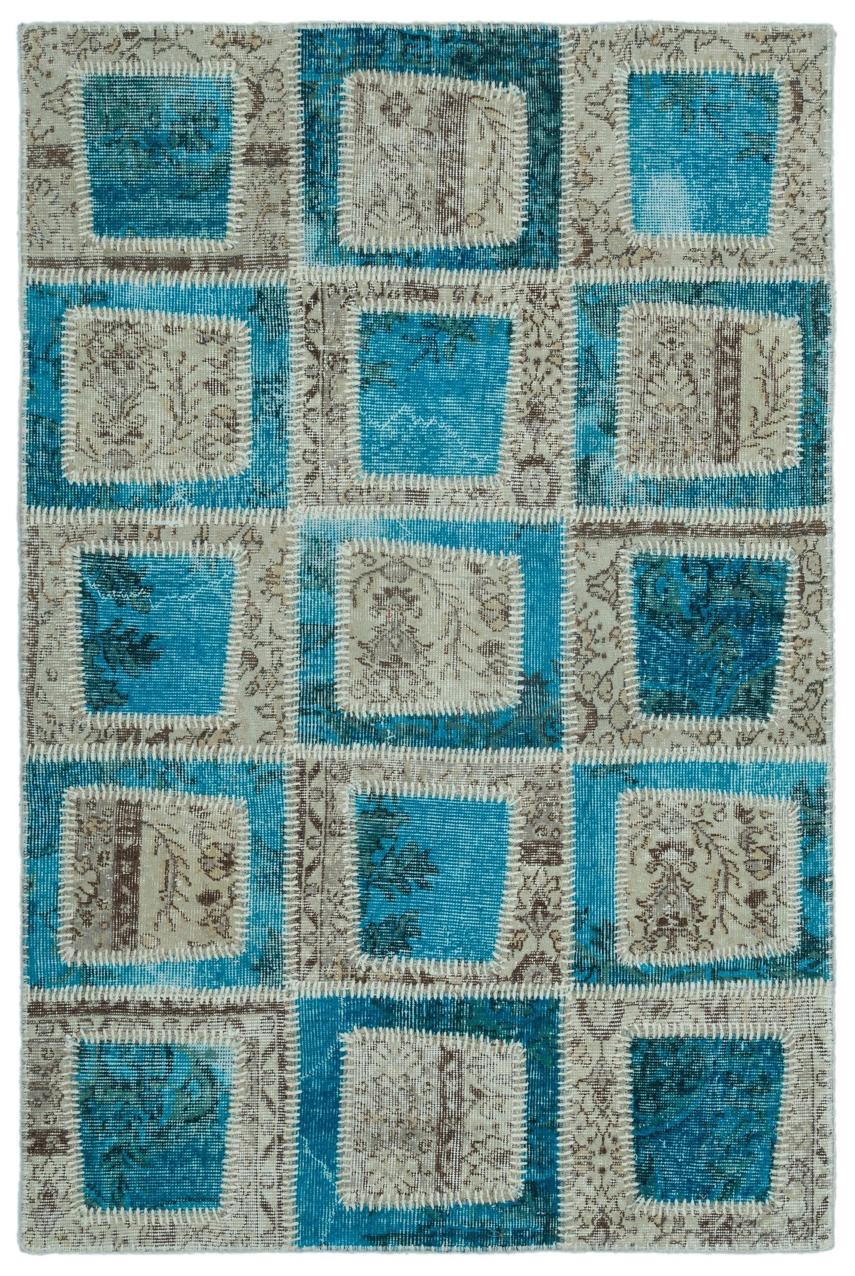 Iskece 22212 Turquoise Patchwork Wool Handmade Area Rug 3'11" x 5'11"