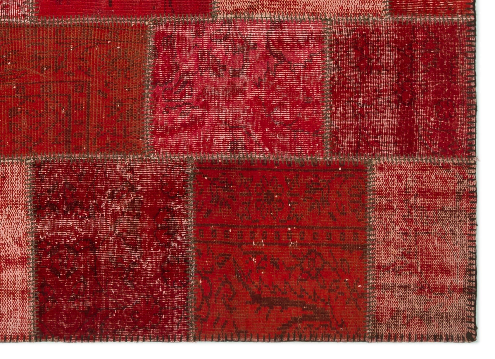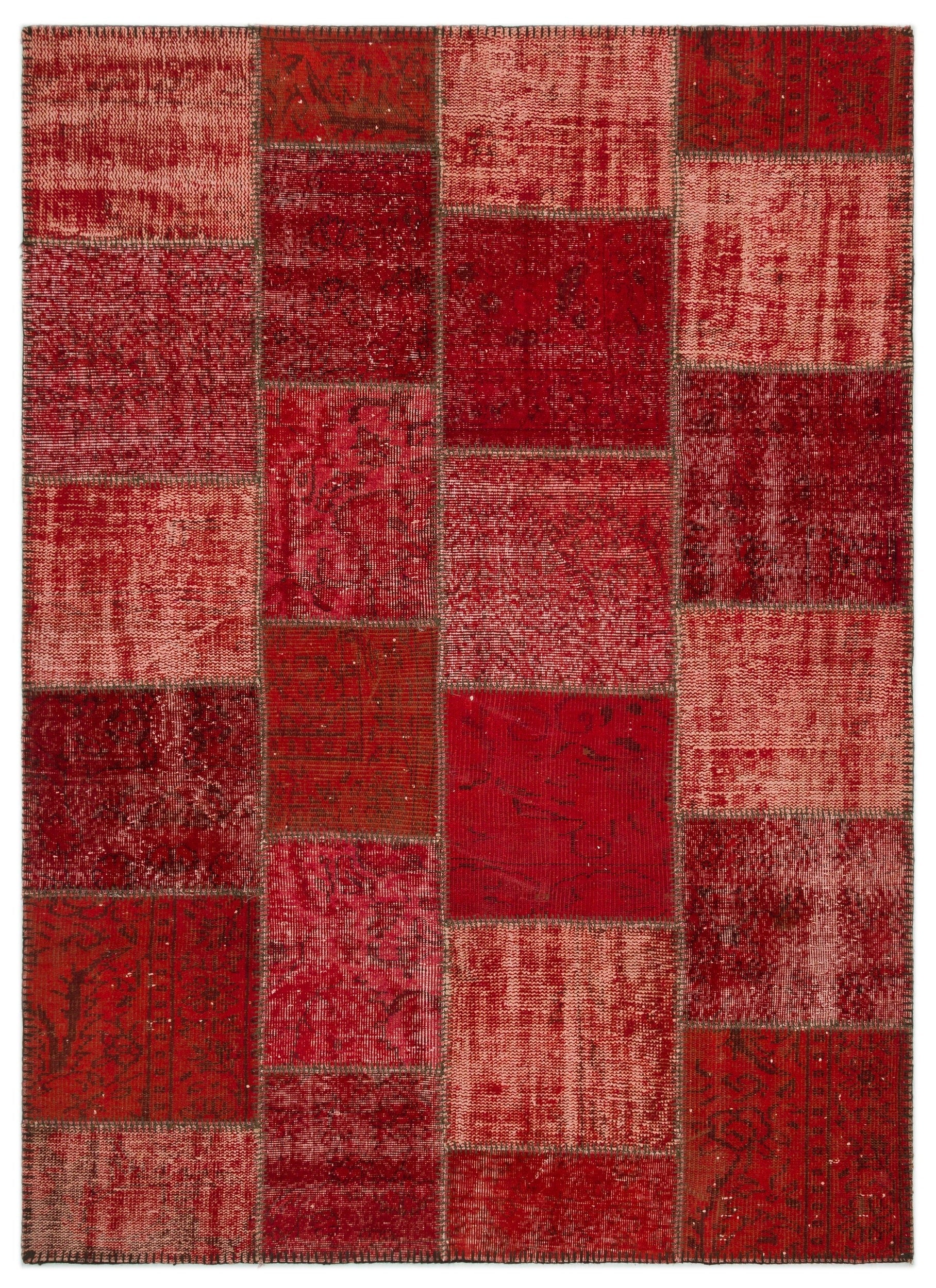 Iskece 22281 Red Patchwork Wool Handmade Area Rug 5'3" x 7'7"