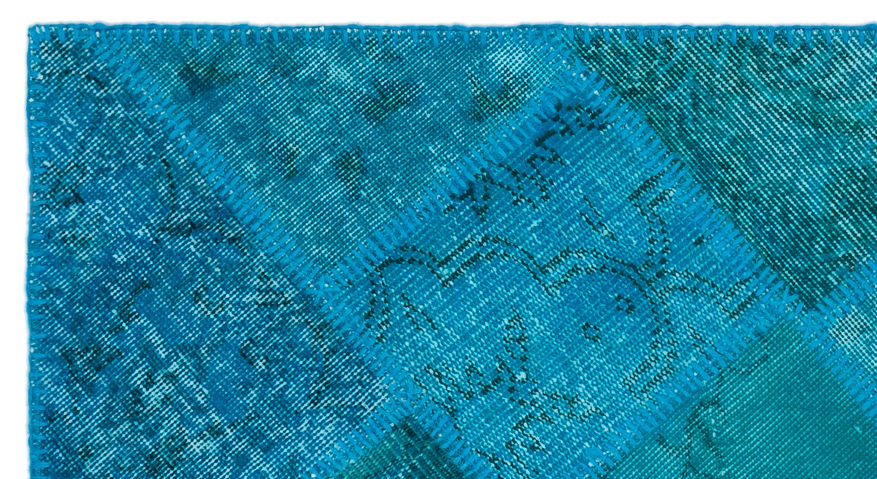 Iskece 25078 Turquoise Patchwork Wool Handmade Area Rug 2'7" x 4'11"