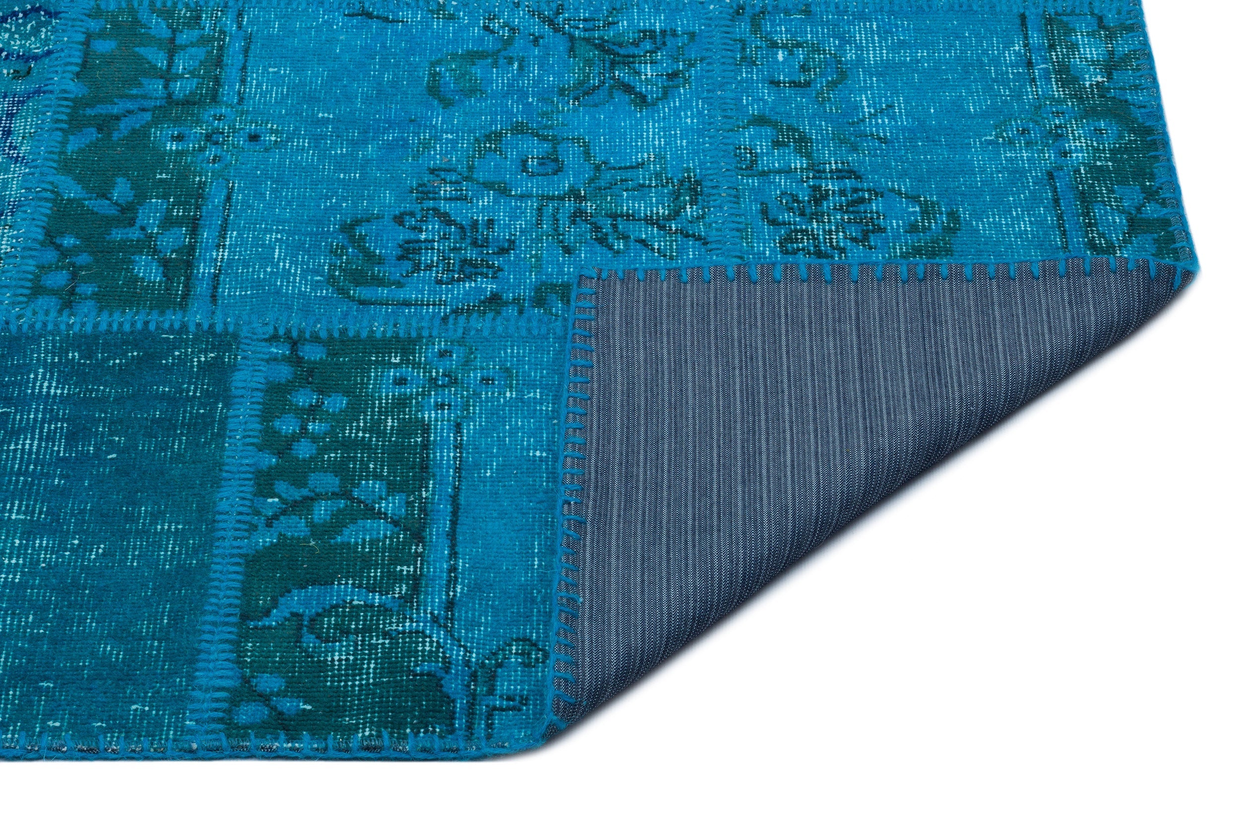 Iskece 25110 Turquoise Patchwork Wool Handmade Area Rug 3'11" x 5'11"