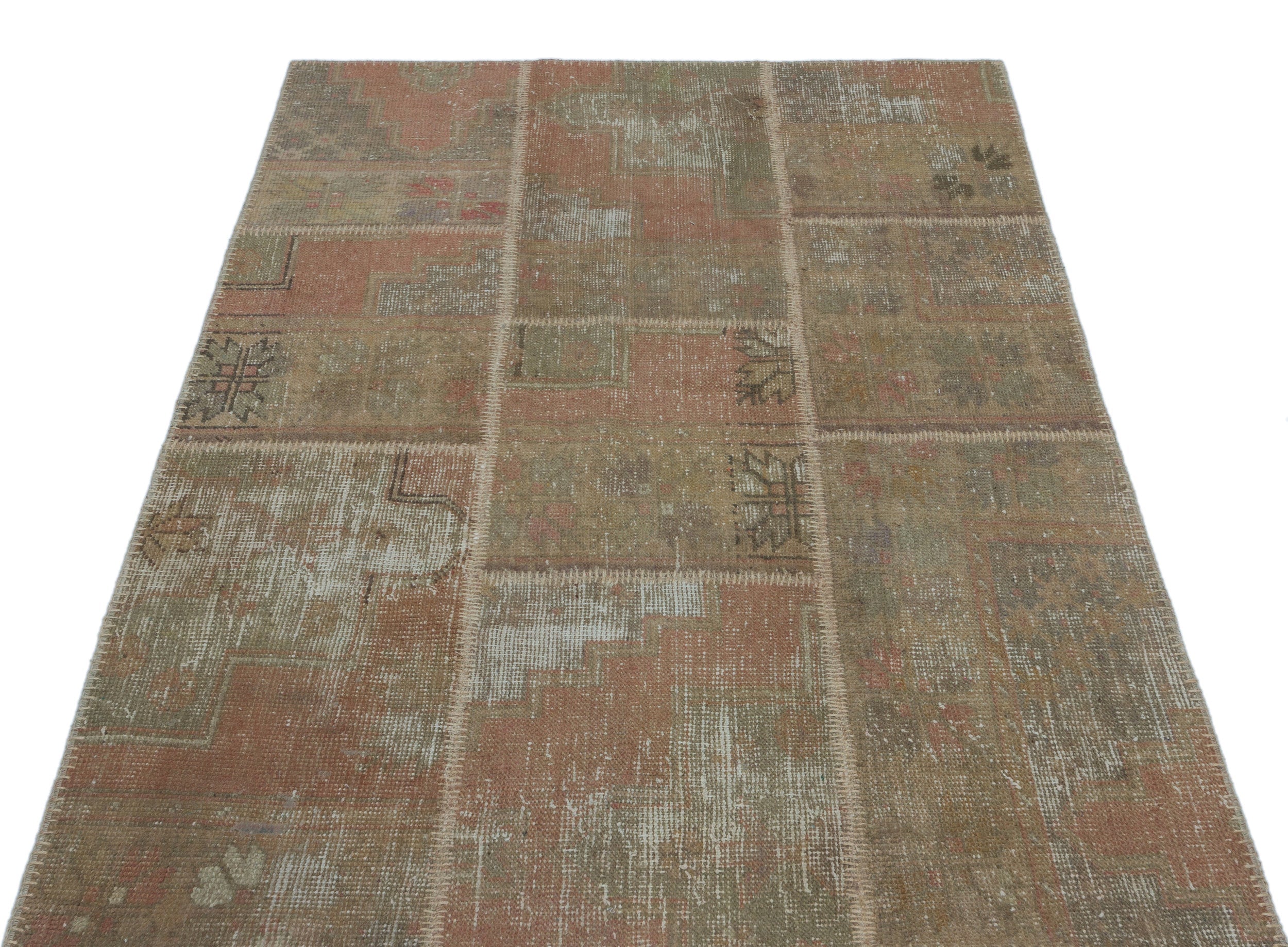 Iskece 25181 Beige Patchwork Wool Handmade Area Rug 3'11" x 5'11"