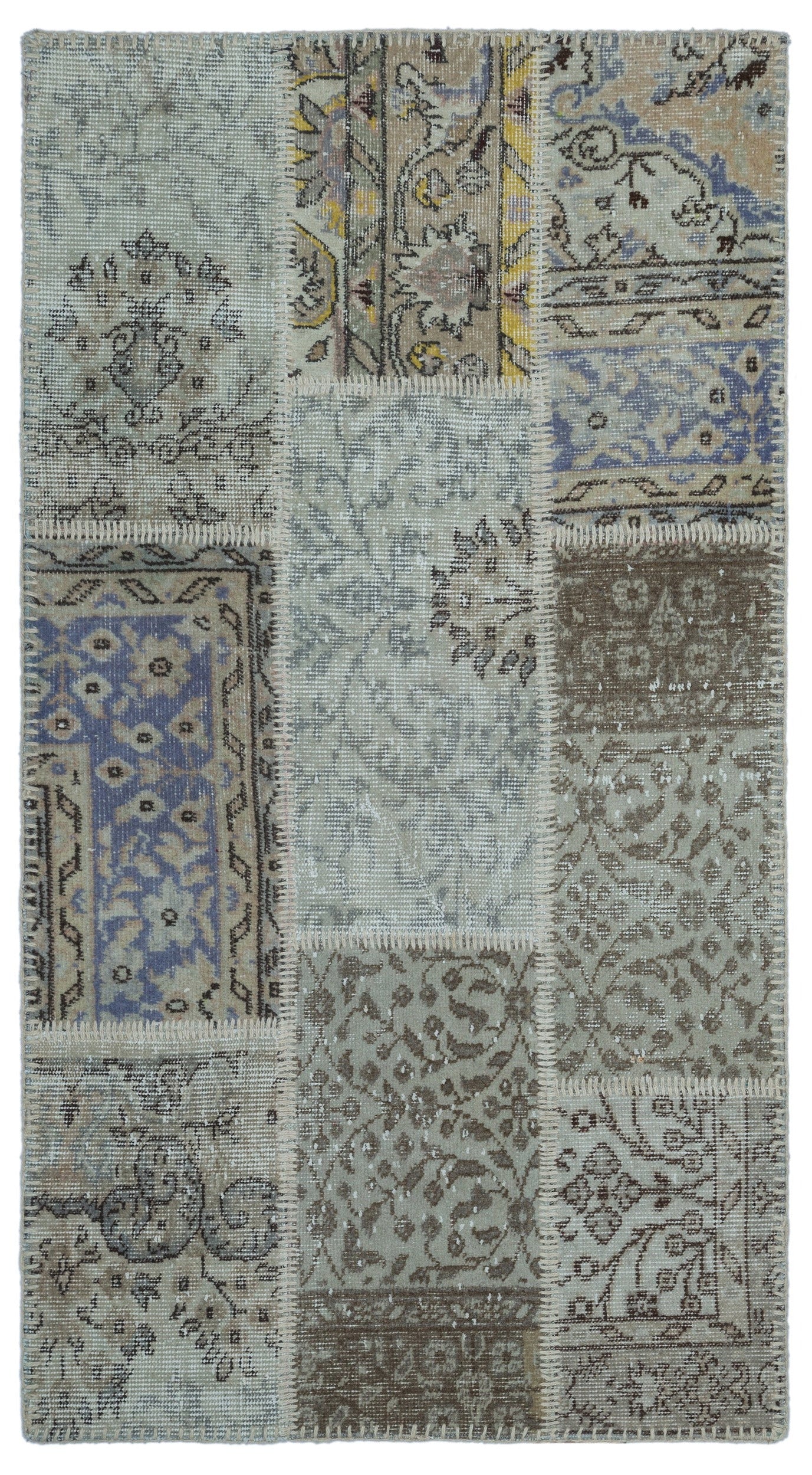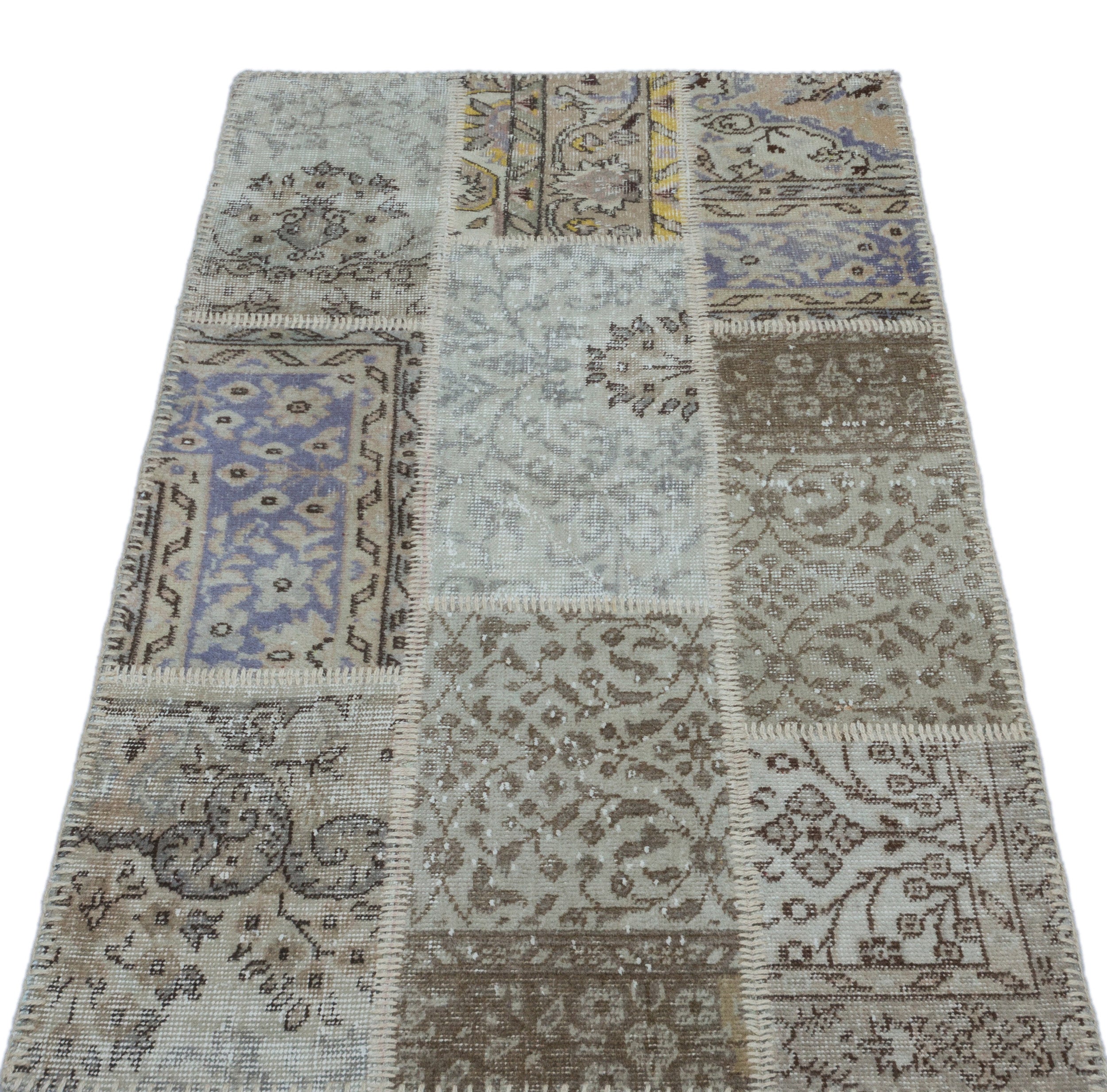 Iskece 25886 Beige Patchwork Wool Handmade Area Rug 2'7" x 4'11"