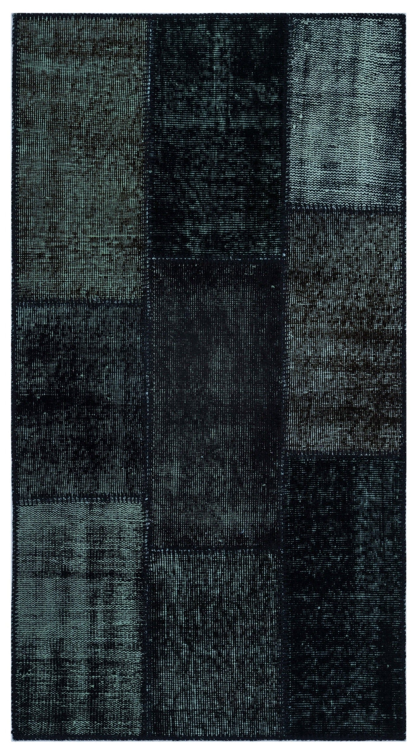 Iskece 25955 Black Patchwork Wool Handmade Area Rug 2'7" x 4'11"
