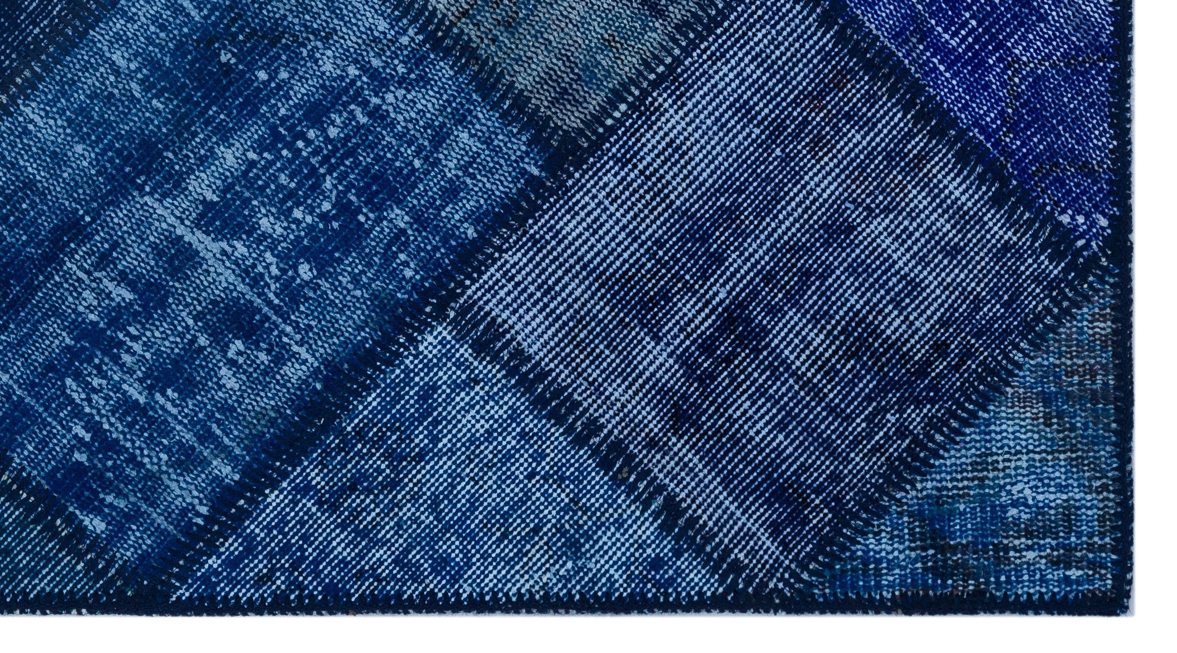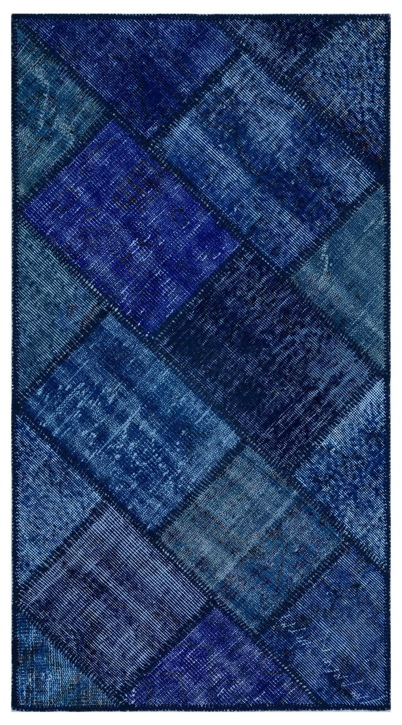 Iskece 25976 Blue Patchwork Wool Handmade Area Rug 2'7" x 4'11"
