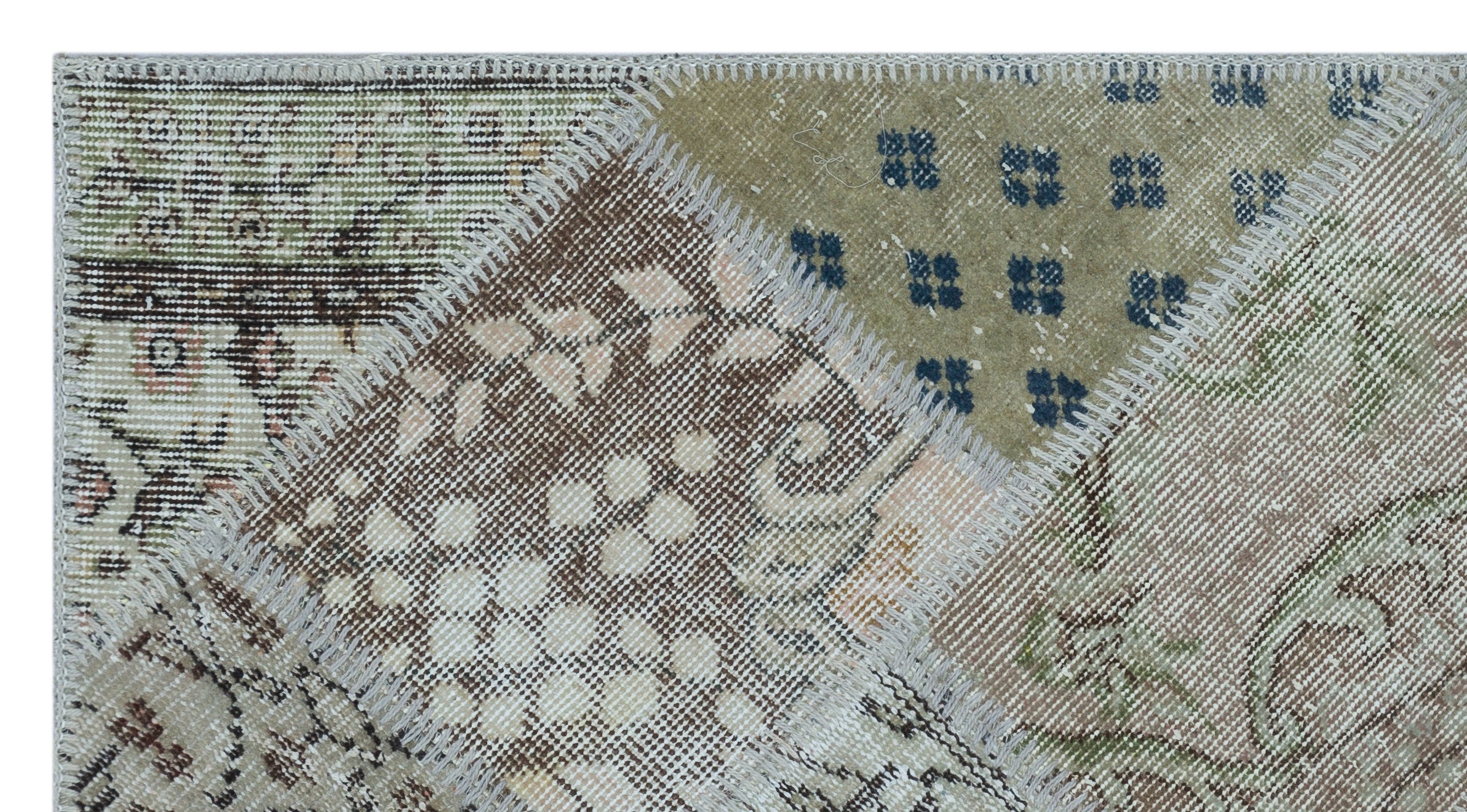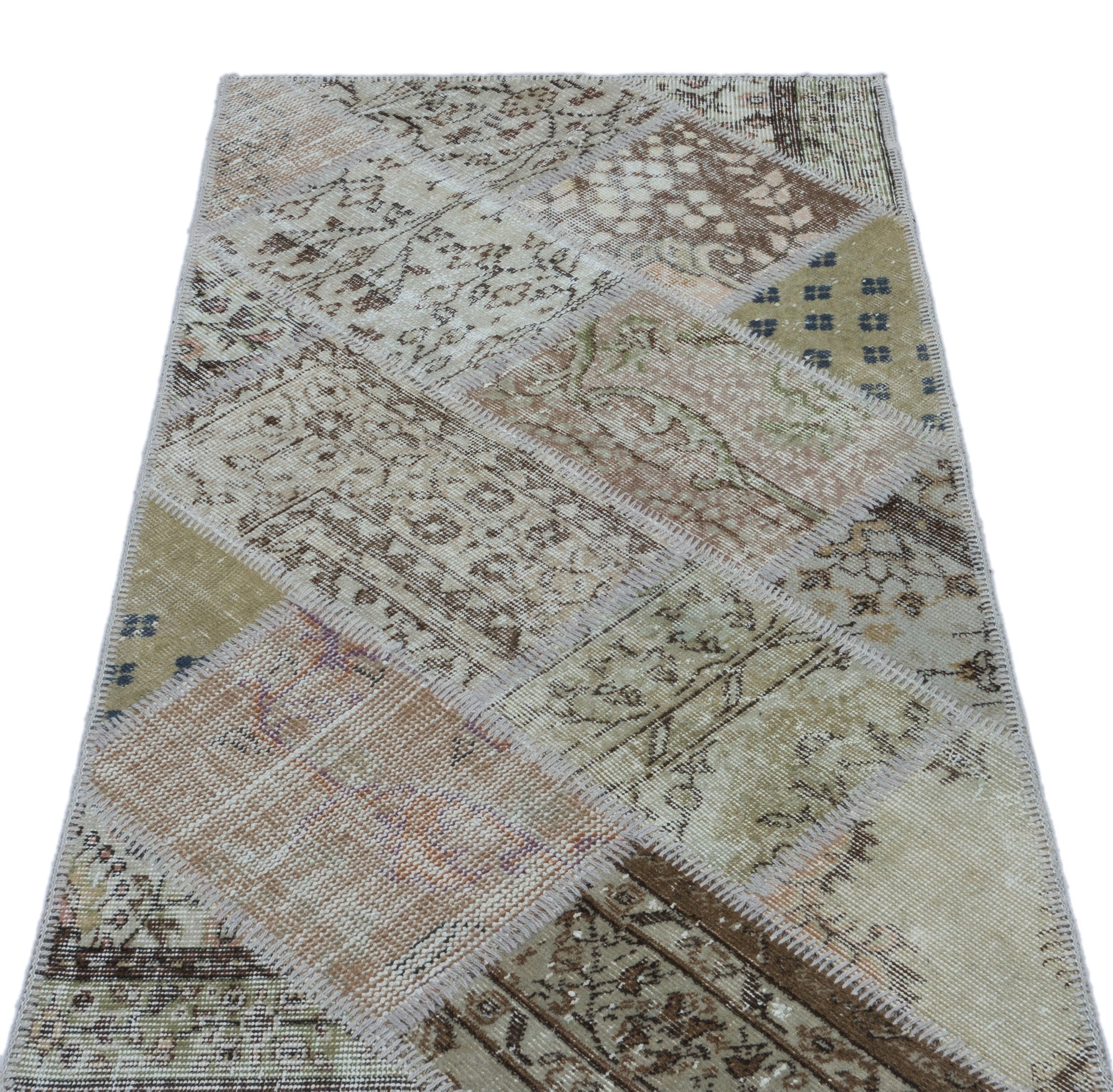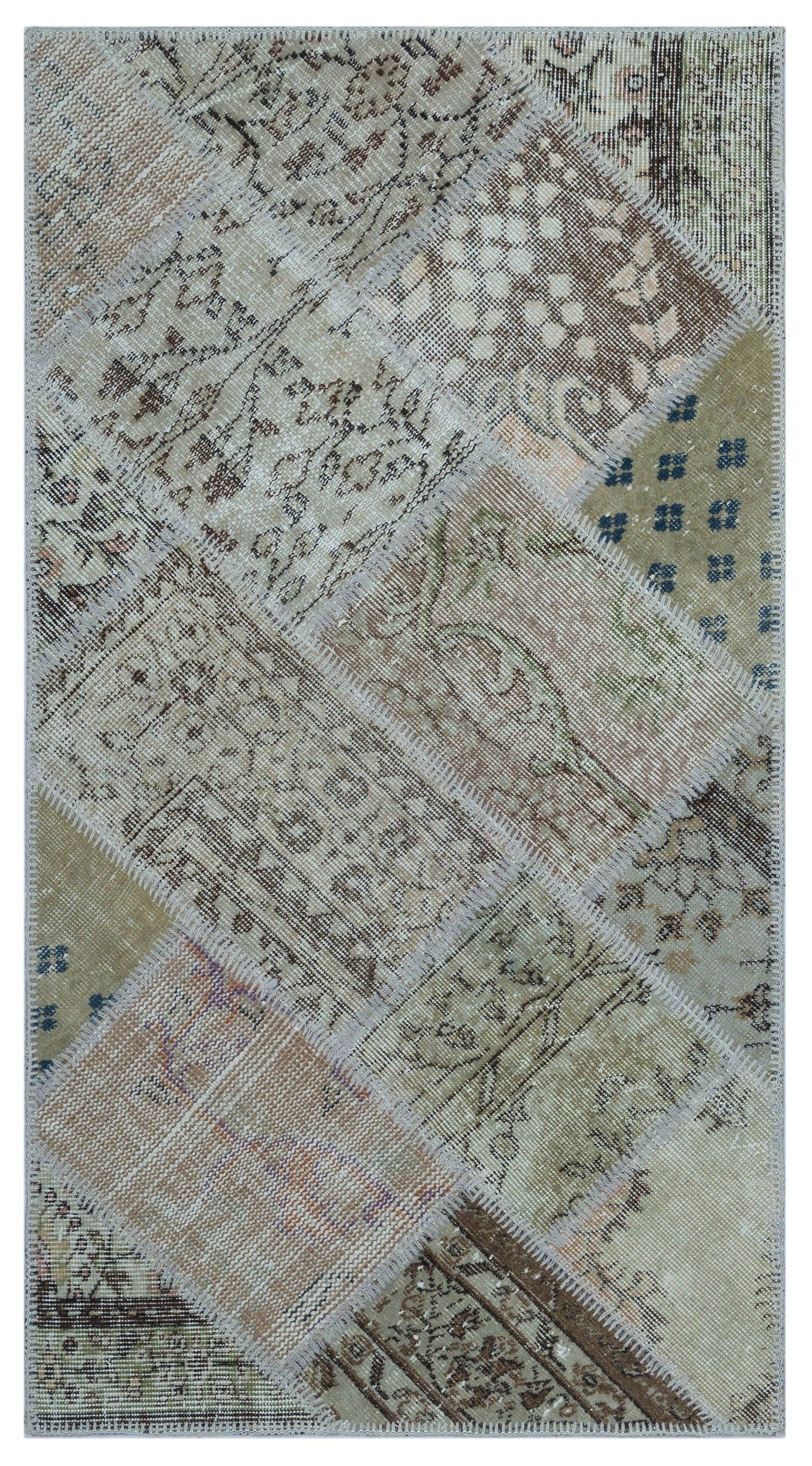 Iskece 26026 Beige Patchwork Wool Handmade Area Rug 2'7" x 4'11"
