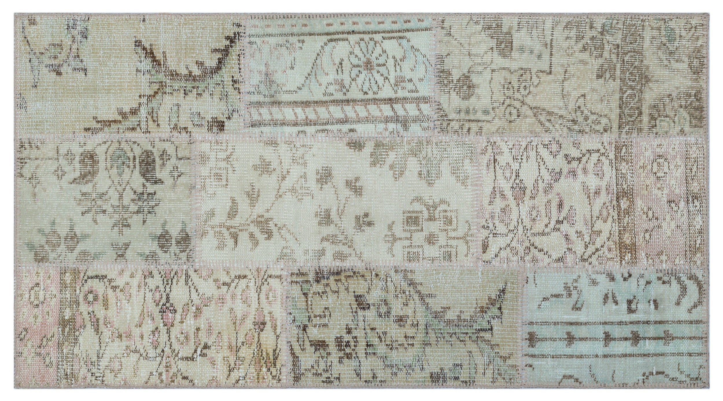 Iskece 26070 Beige Patchwork Wool Handmade Area Rug 2'7" x 4'11"