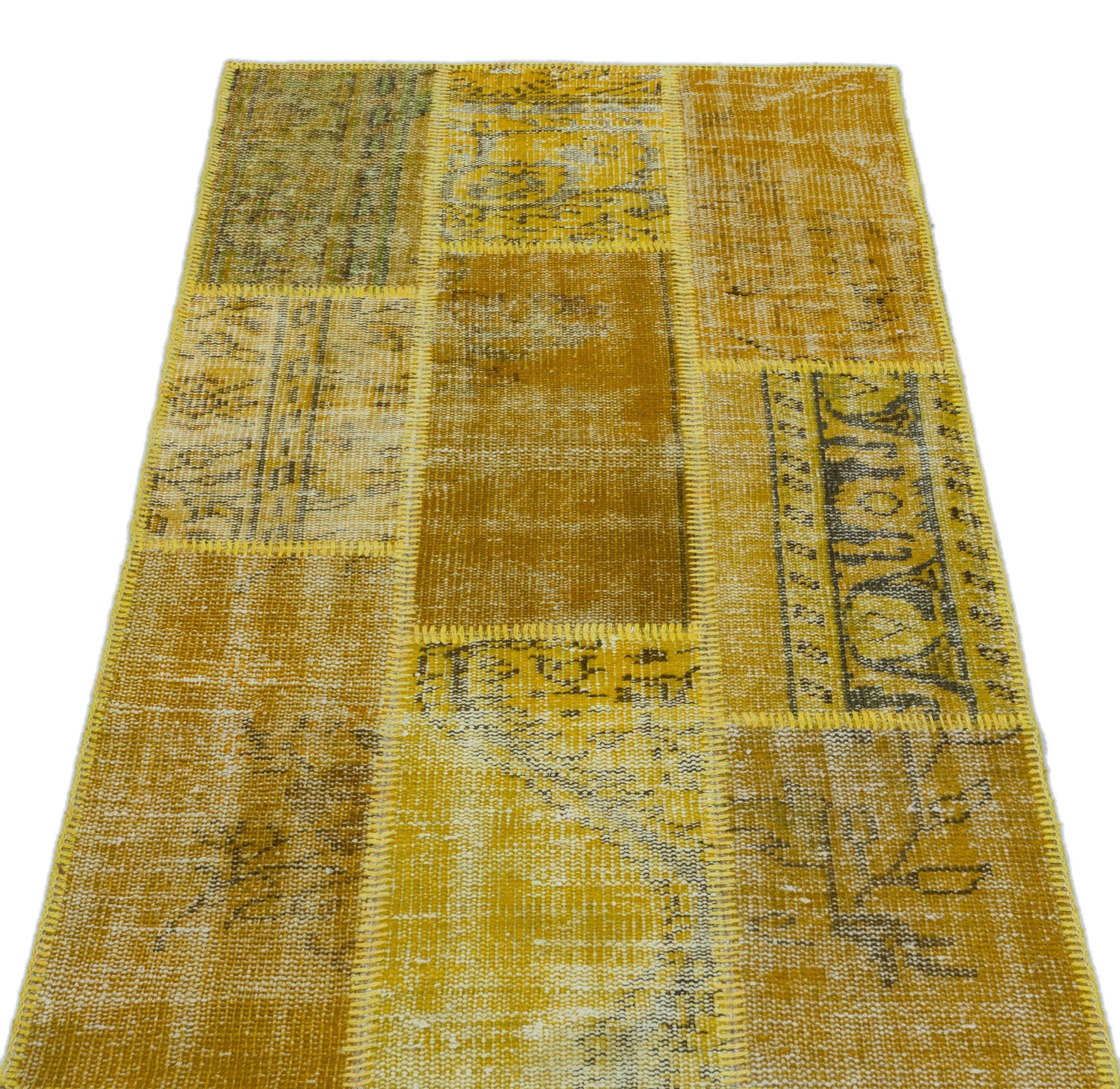 Iskece 26163 Yellow Patchwork Wool Handmade Area Rug 2'7" x 4'11"