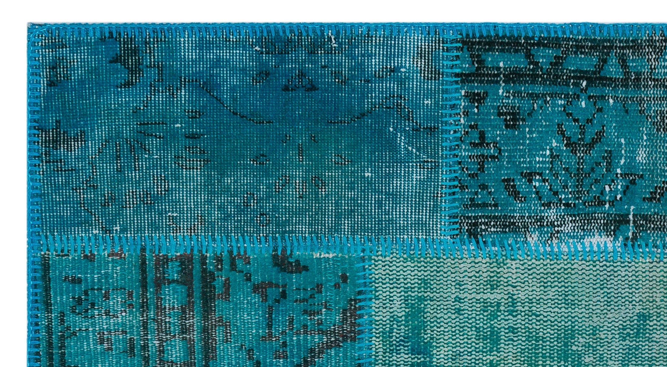Iskece 26182 Turquoise Patchwork Wool Handmade Area Rug 2'7" x 4'11"