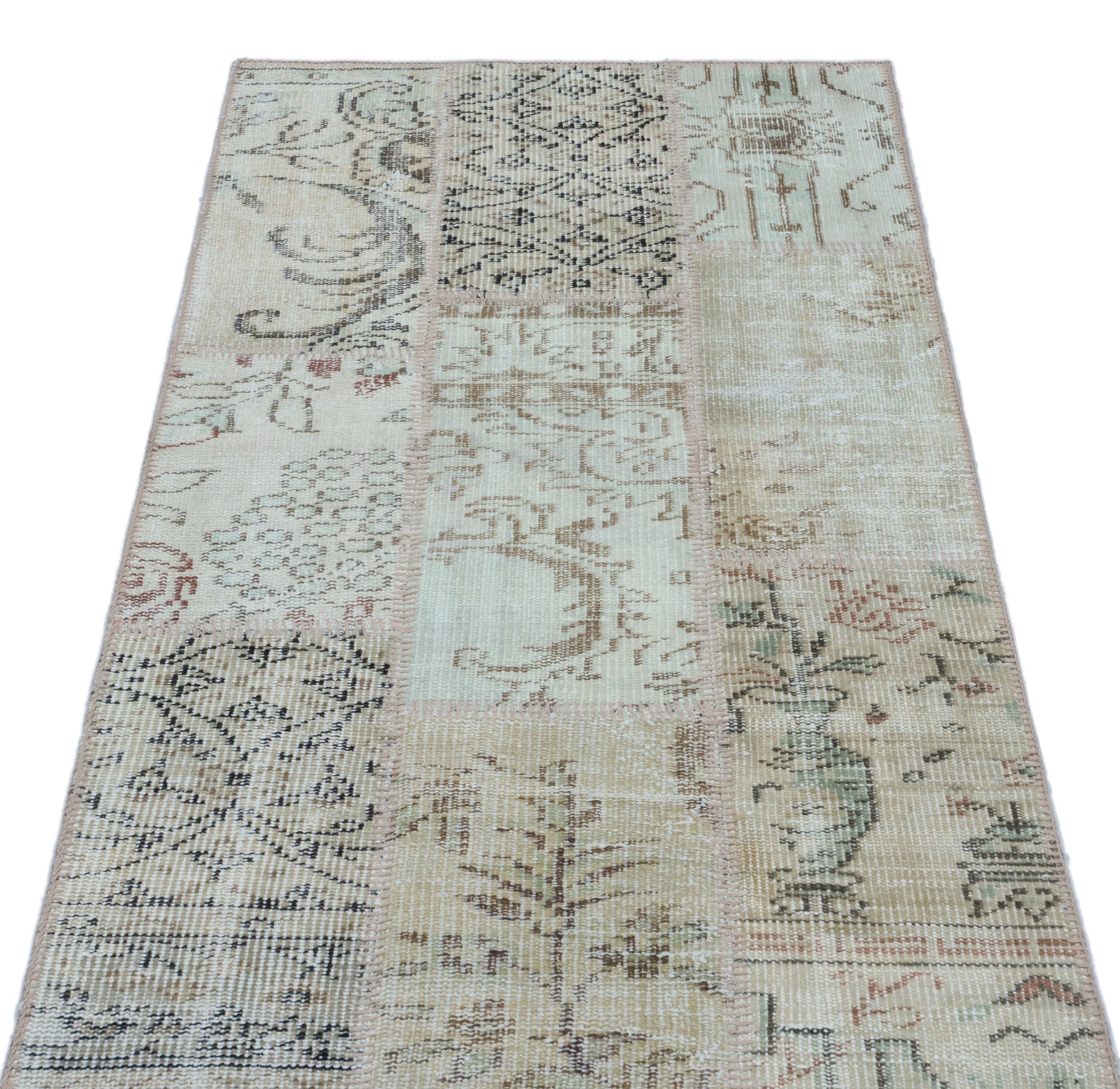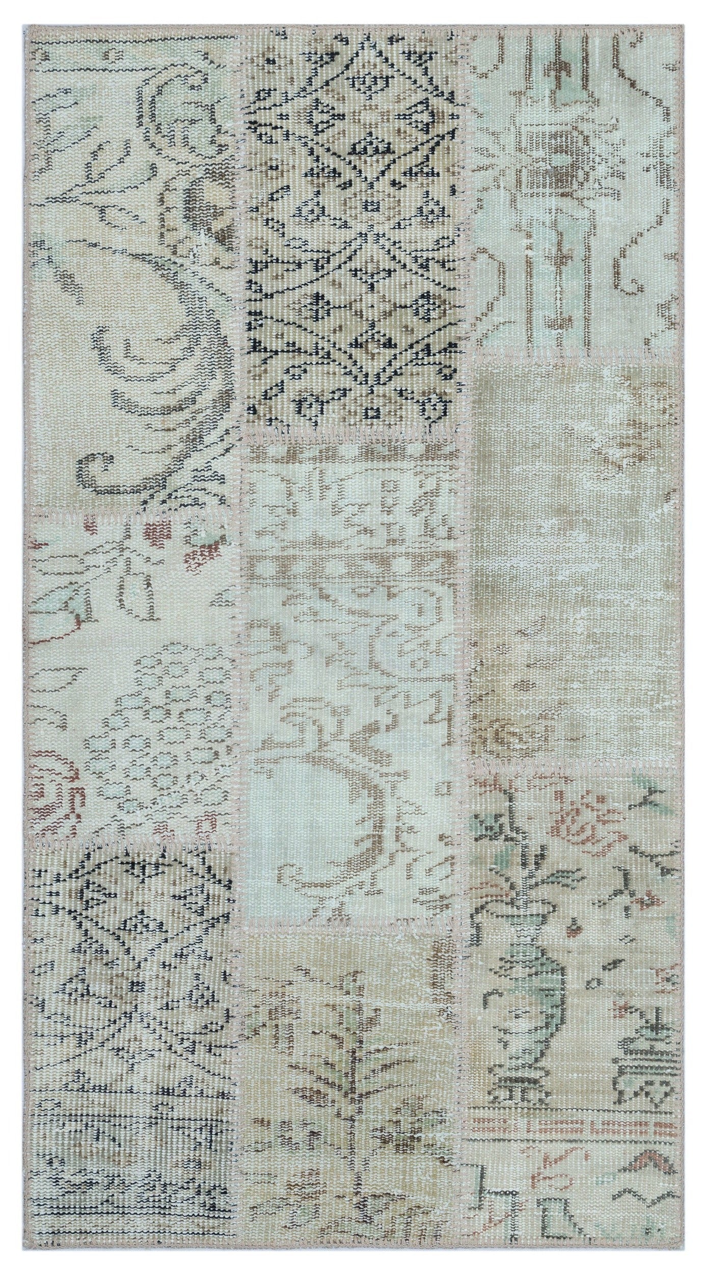 Iskece 26198 Beige Patchwork Wool Handmade Area Rug 2'7" x 4'11"