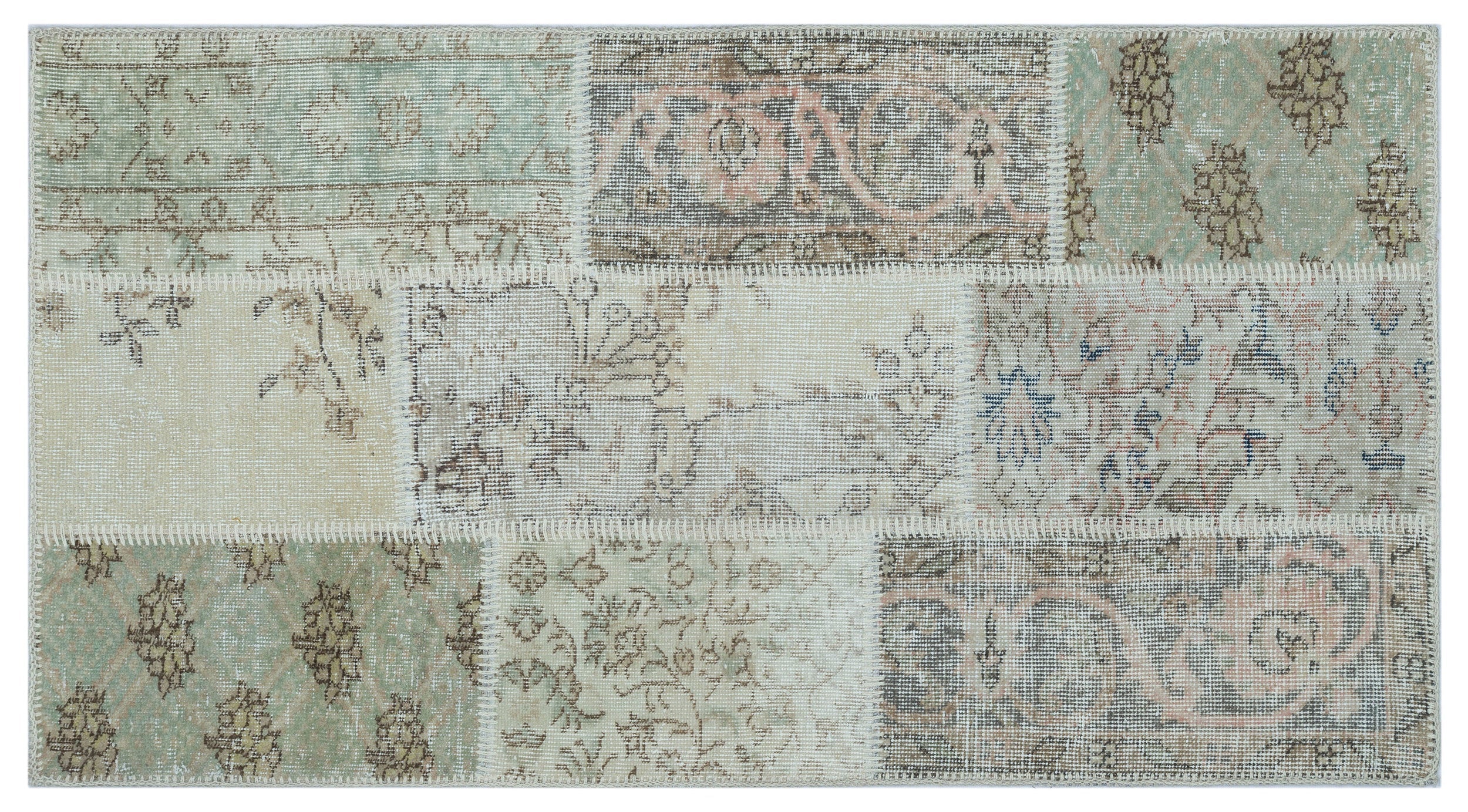Iskece 26231 Beige Patchwork Wool Handmade Area Rug 2'7" x 4'11"
