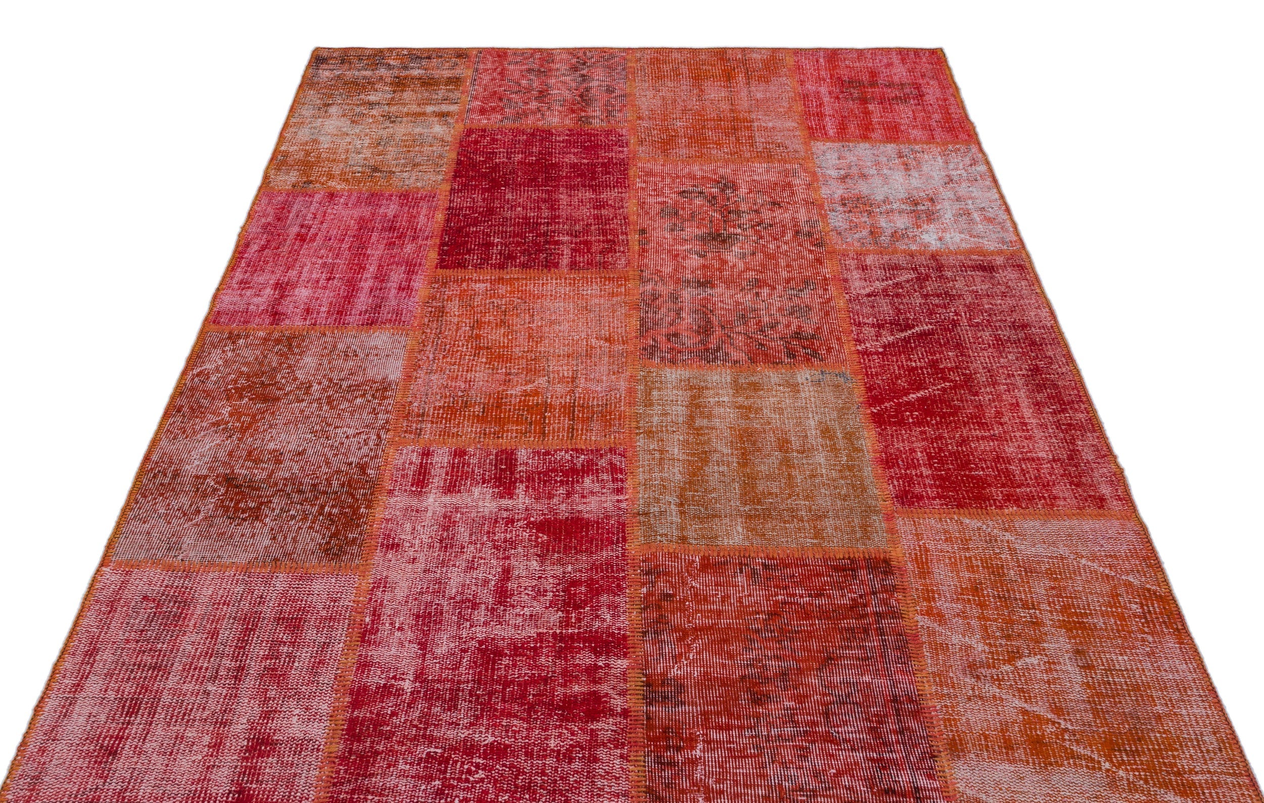 Iskece 26379 Red Patchwork Wool Handmade Area Rug 5'3" x 7'7"