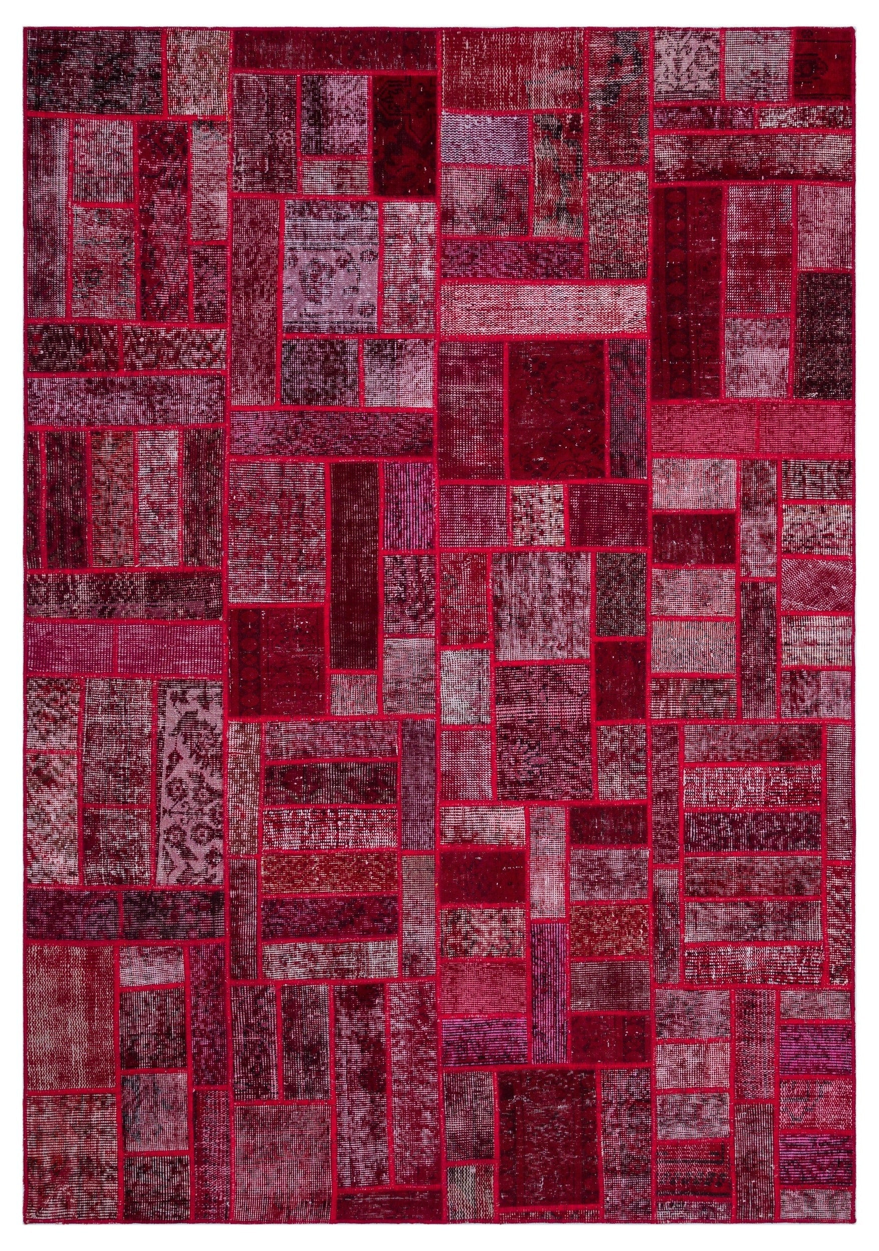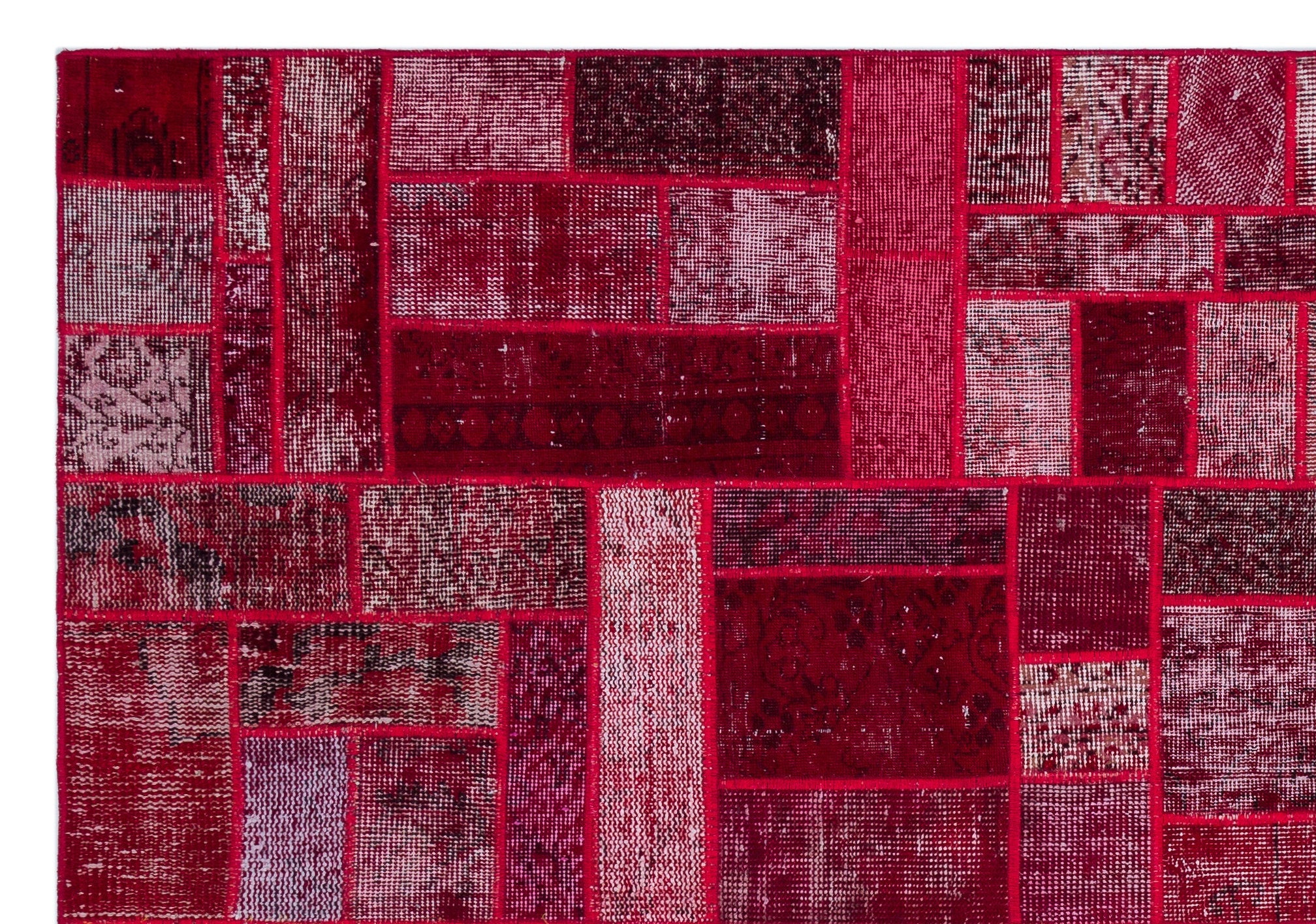 Iskece 26423 Red Patchwork Wool Handmade Area Rug 5'3" x 7'7"
