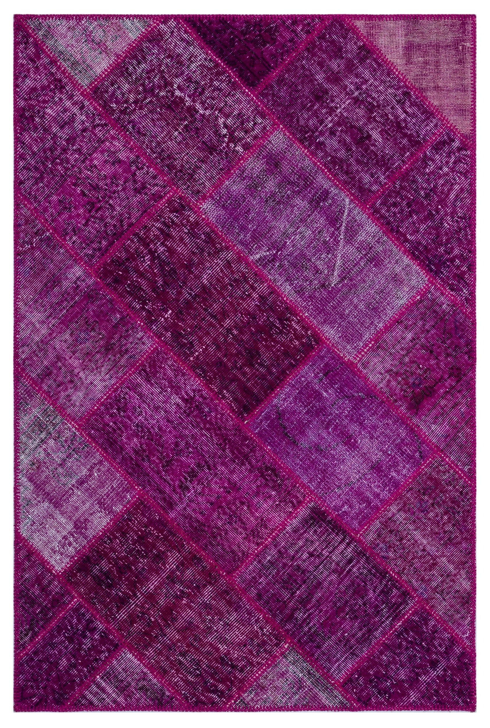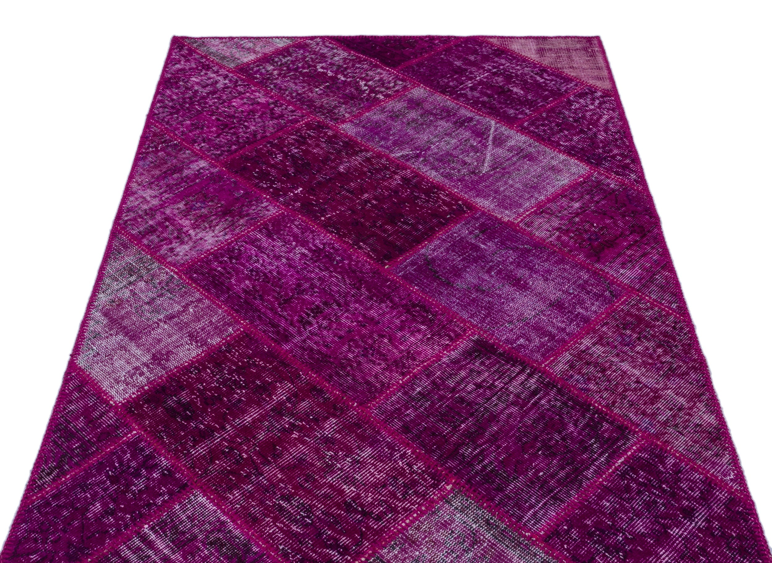 Iskece 26604 Pink Patchwork Wool Handmade Area Rug 3'11" x 5'11"
