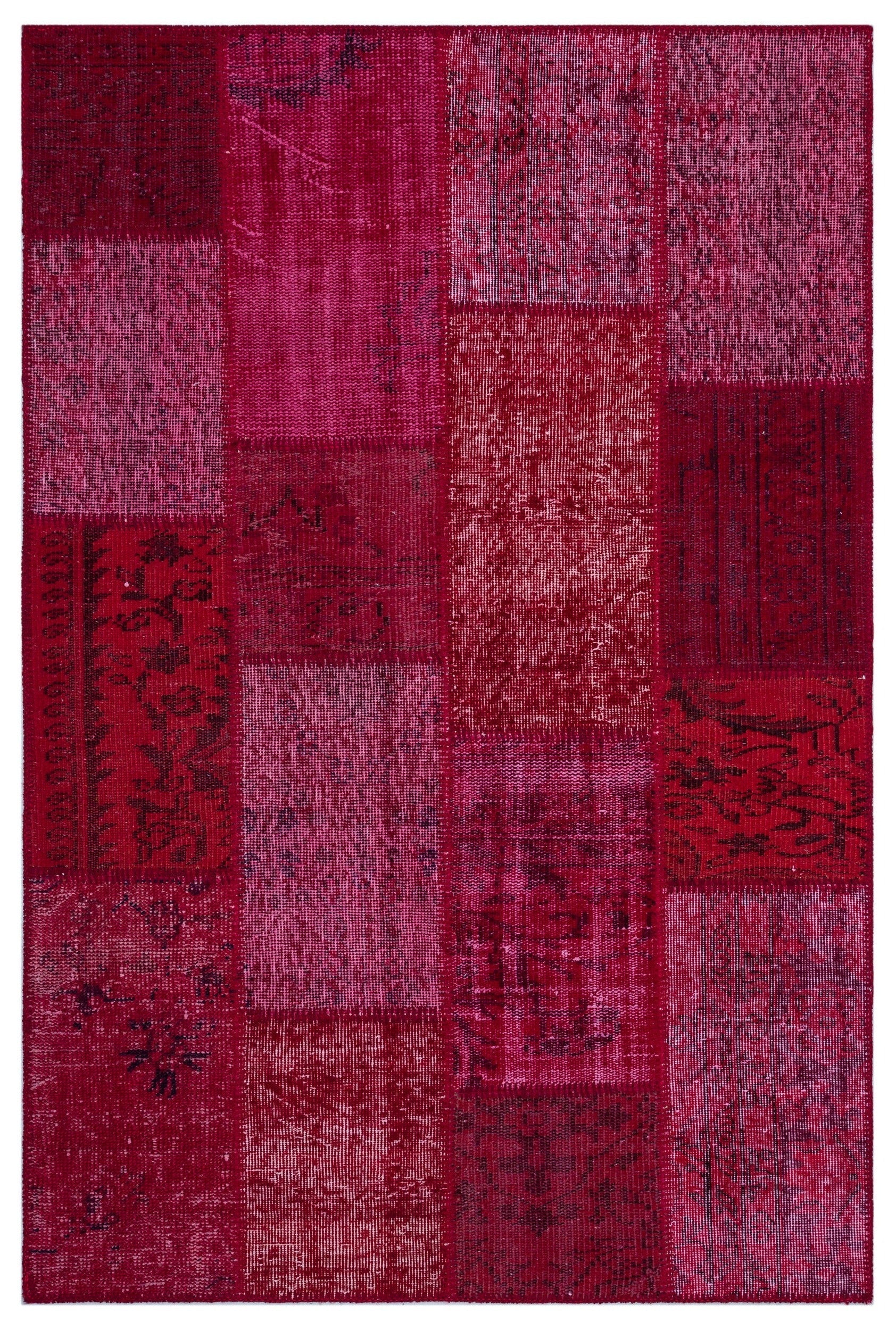 Iskece 26728 Red Patchwork Wool Handmade Area Rug 3'11" x 5'11"