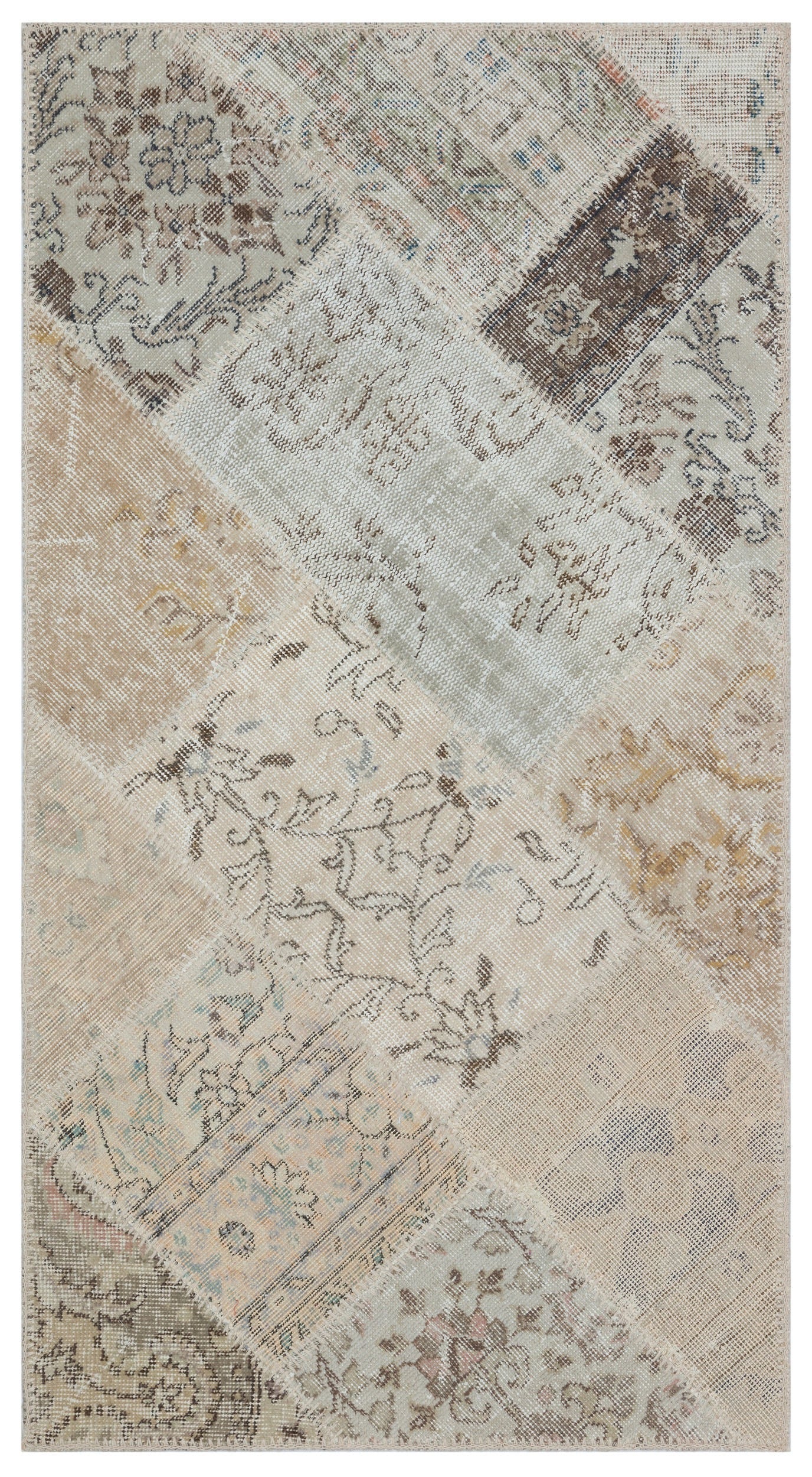 Iskece 31391 Beige Patchwork Wool Handmade Area Rug 2'7" x 4'11"