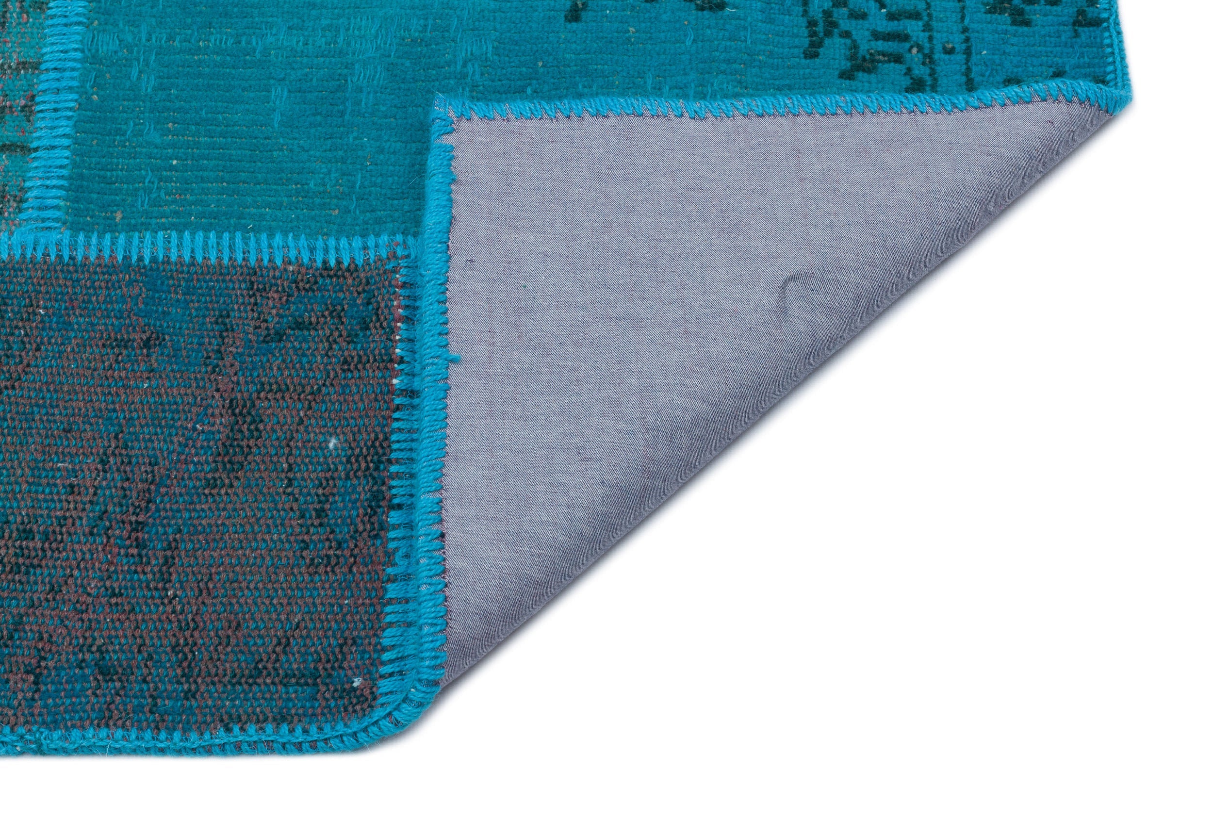 Iskece 33139 Turquoise Patchwork Wool Handmade Area Rug 3'11" x 5'11"