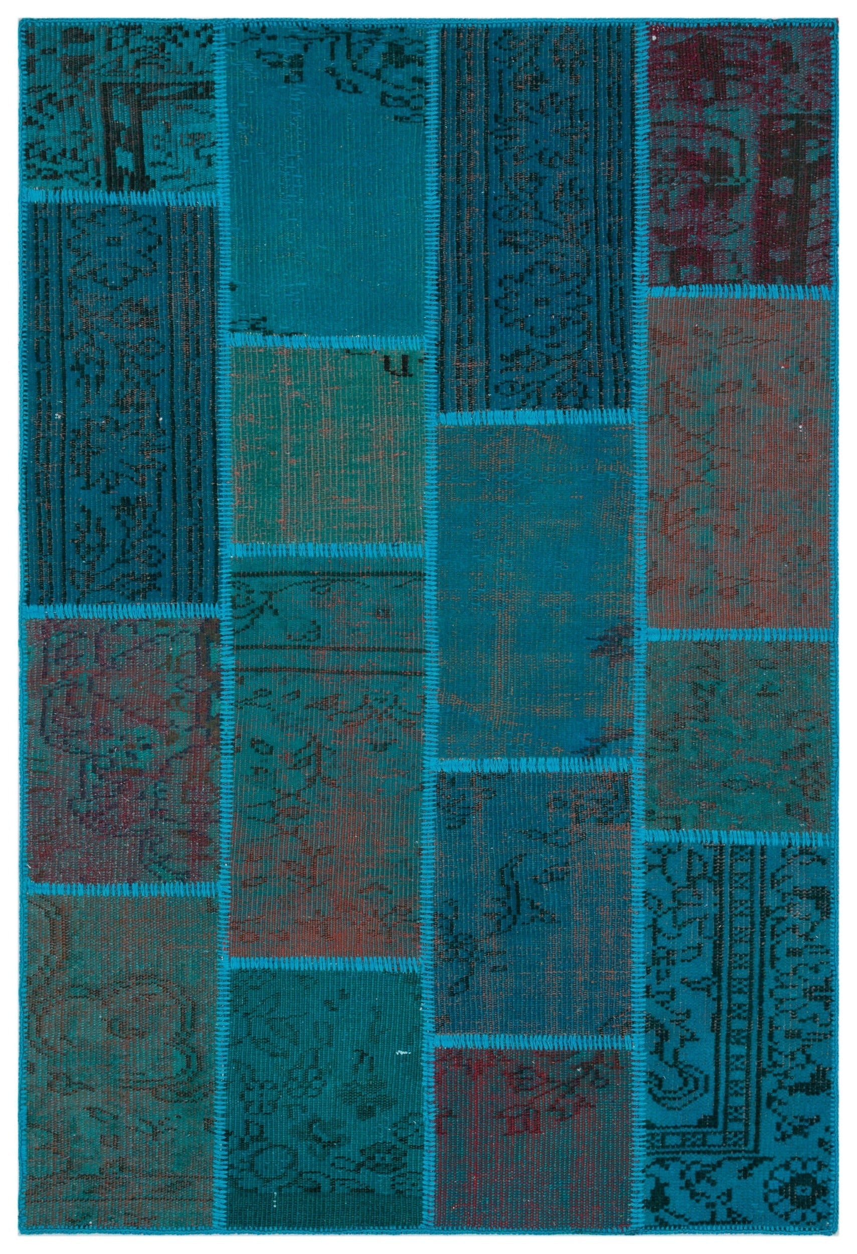 Iskece 33146 Turquoise Patchwork Wool Handmade Area Rug 3'11" x 5'11"