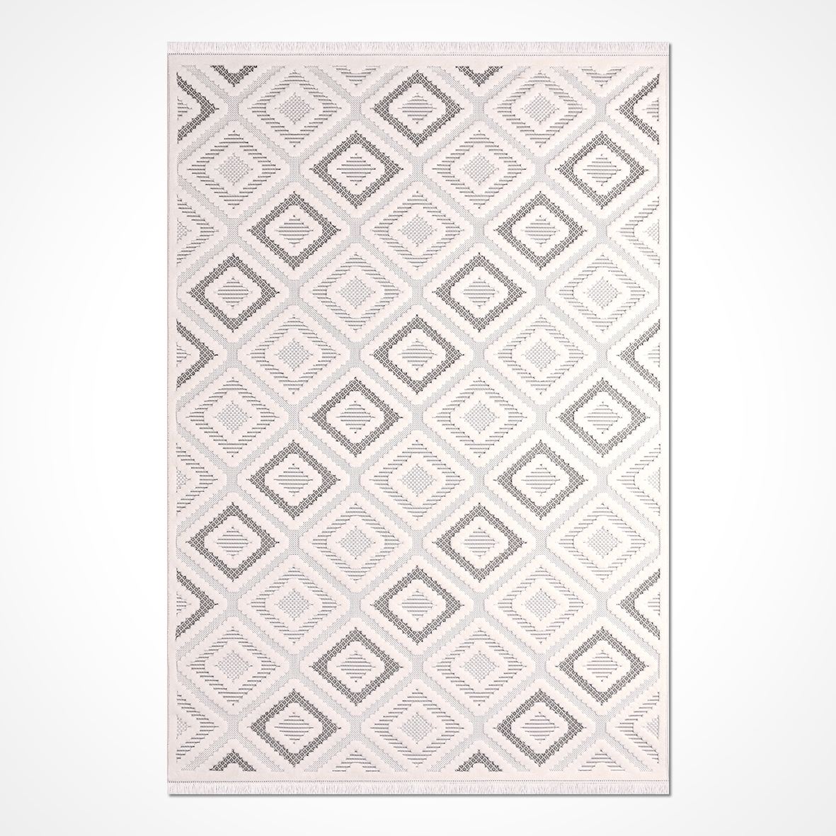 - Contemporary design rug featuring a crisp white geometric pattern that complements modern interiors