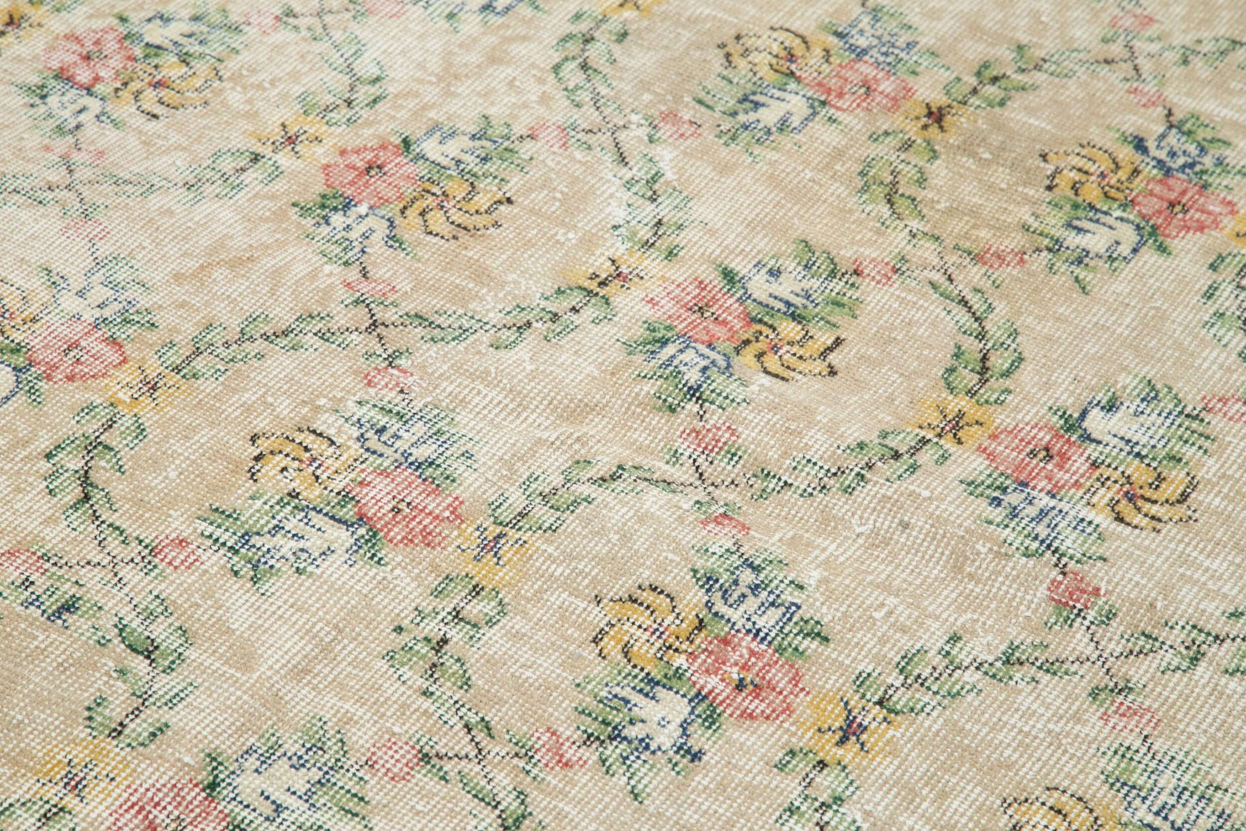 Choose this hand knotted carpet for a reliable and stylish upgrade that blends history with everyday functionality. Its bohemian style rug appeal fits modern and classic decors alike, making it a versatile addition to your home. Experience the craftsmanship of vintage Turkish rugs combined with the benefits of natural fibers and expert restoration in one elegant piece.