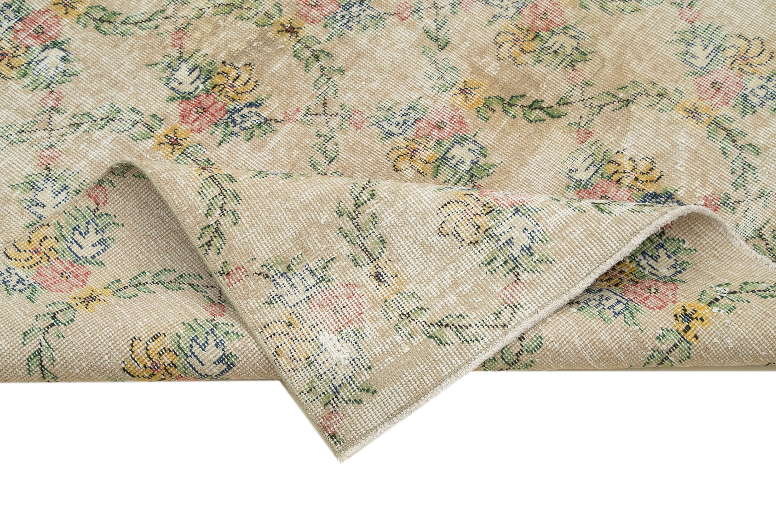 The woven wool rug features a soft yet durable floor covering that enhances any space with its neutral beige tones. Its cotton wool carpet construction offers comfort underfoot while maintaining resilience against daily wear. This traditional woven carpet has been selected from carpets aged 30 to 70 years, cleaned, washed, and treated with special methods to neutralize and subtly shift original colors, preserving its authentic look.