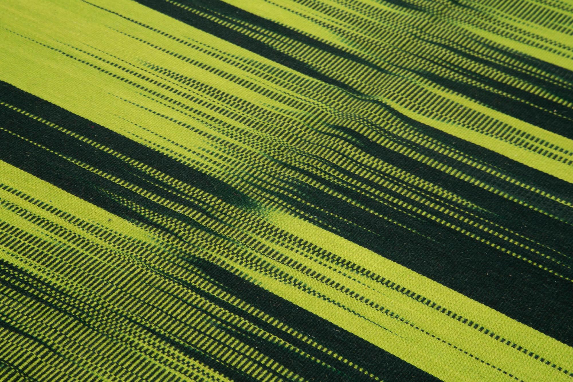 Degrade Kilim Green Striped Cotton Wool Handmade Area Rug 5'11'' x 8'8''