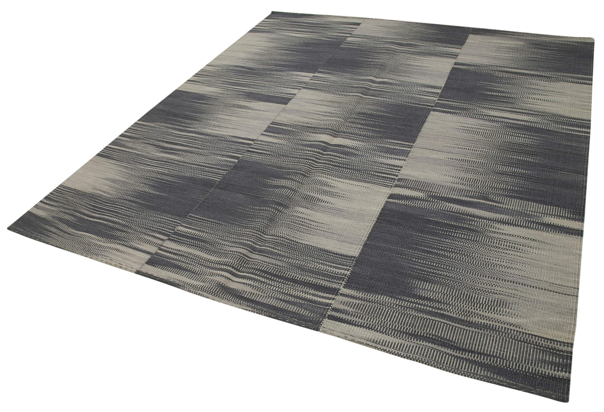 Degrade Kilim Grey Striped Cotton Wool Handmade Area Rug 6'11'' x 8'1''