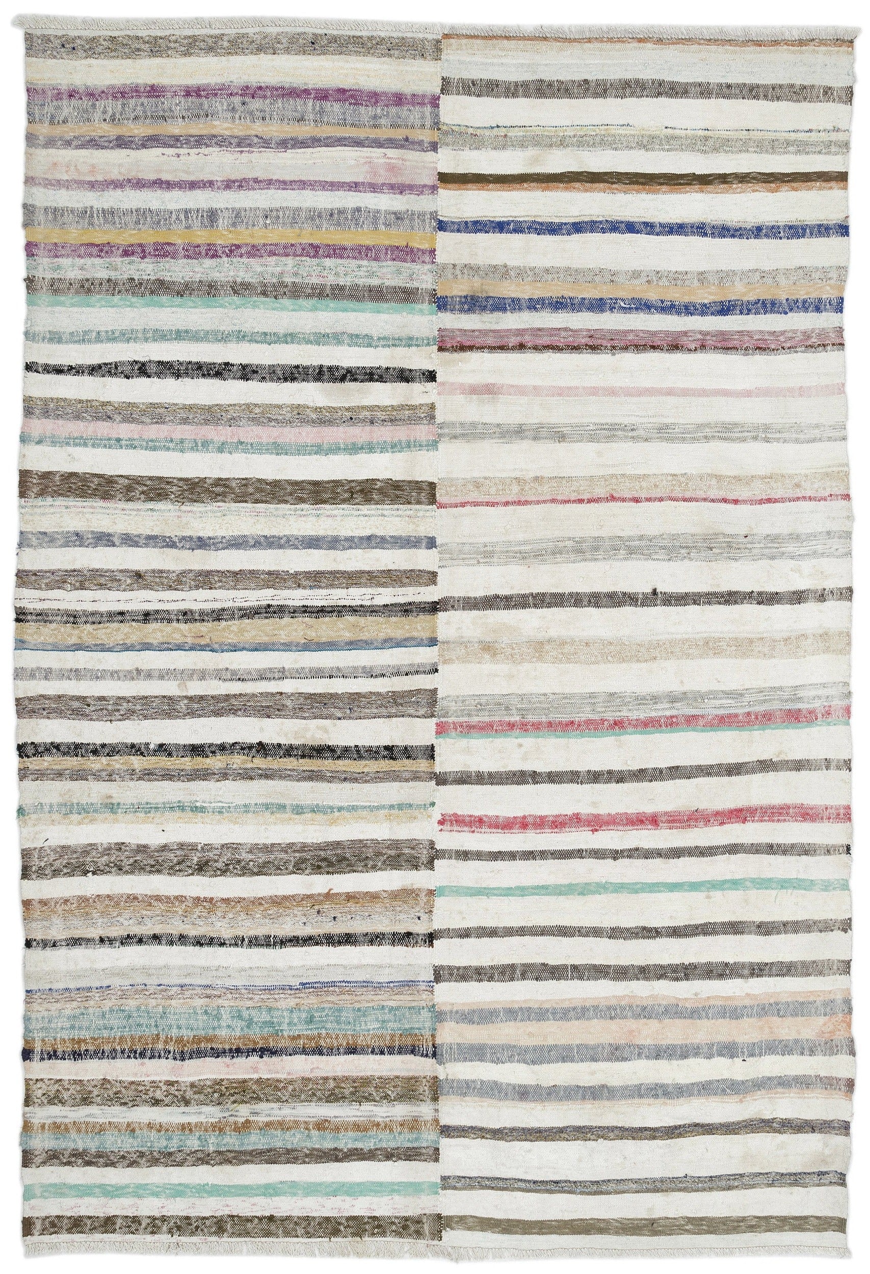 Girit 0981 Beige Striped Wool Handmade Area Rug 6'3" x 9'2"