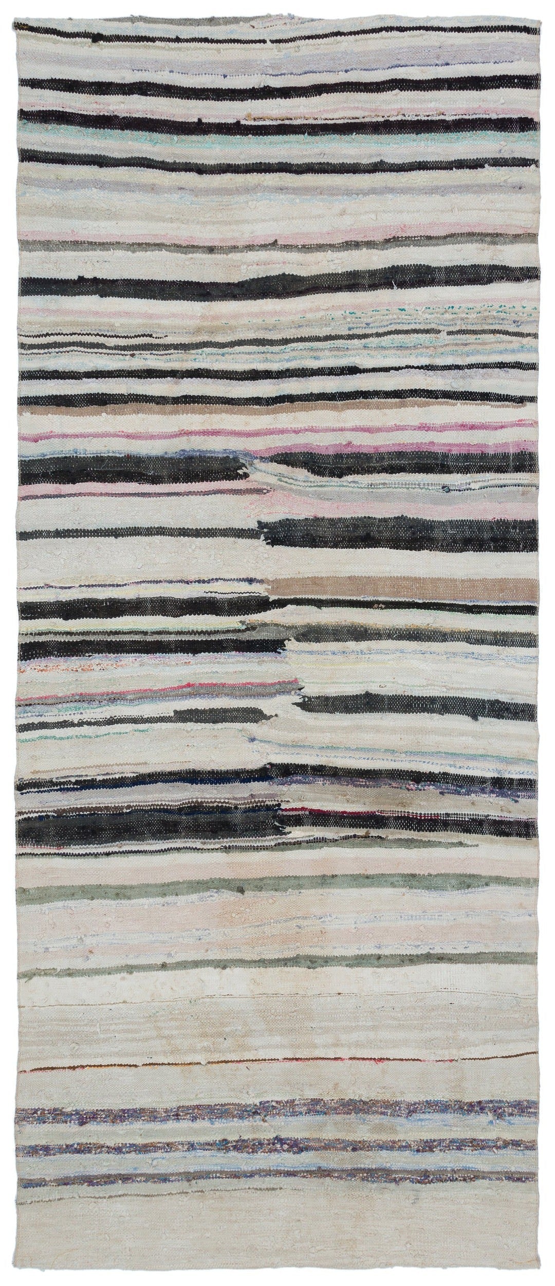 Girit Beige Striped Wool Handmade Area Rug 5'4" x 9'0"