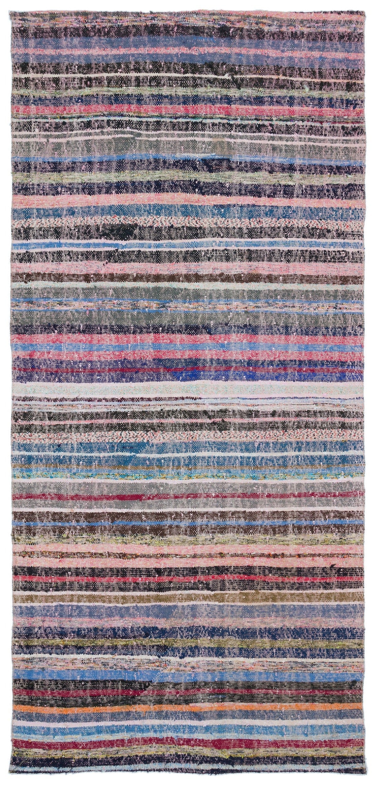 Girit Beige Striped Wool Handmade Area Rug 5'2" x 8'7"