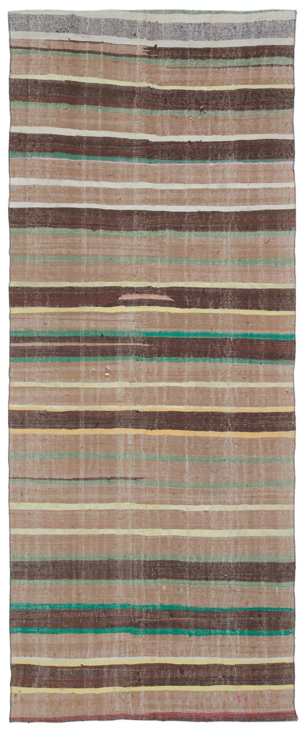 Girit Beige Striped Wool Handmade Area Rug 5'9" x 9'7"