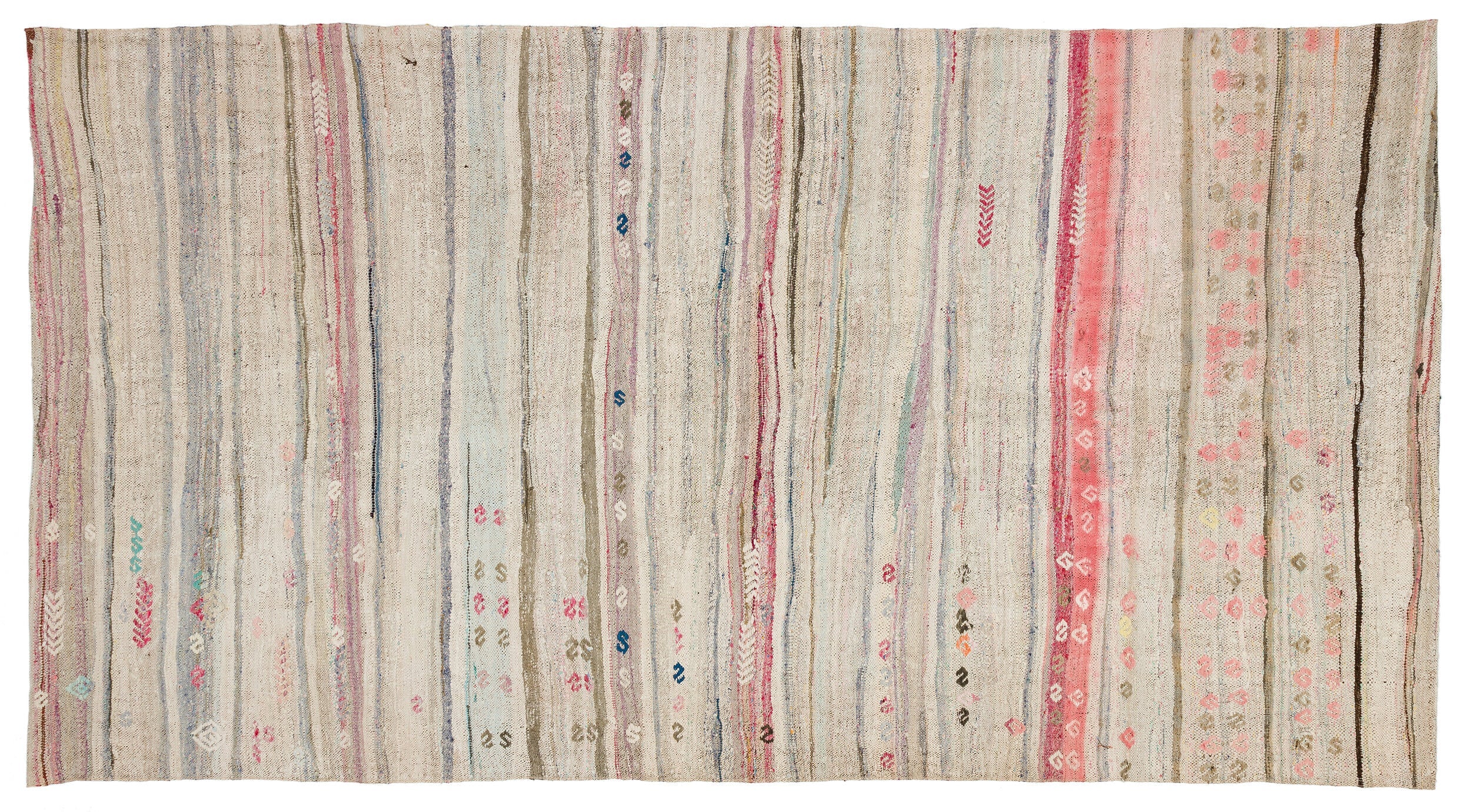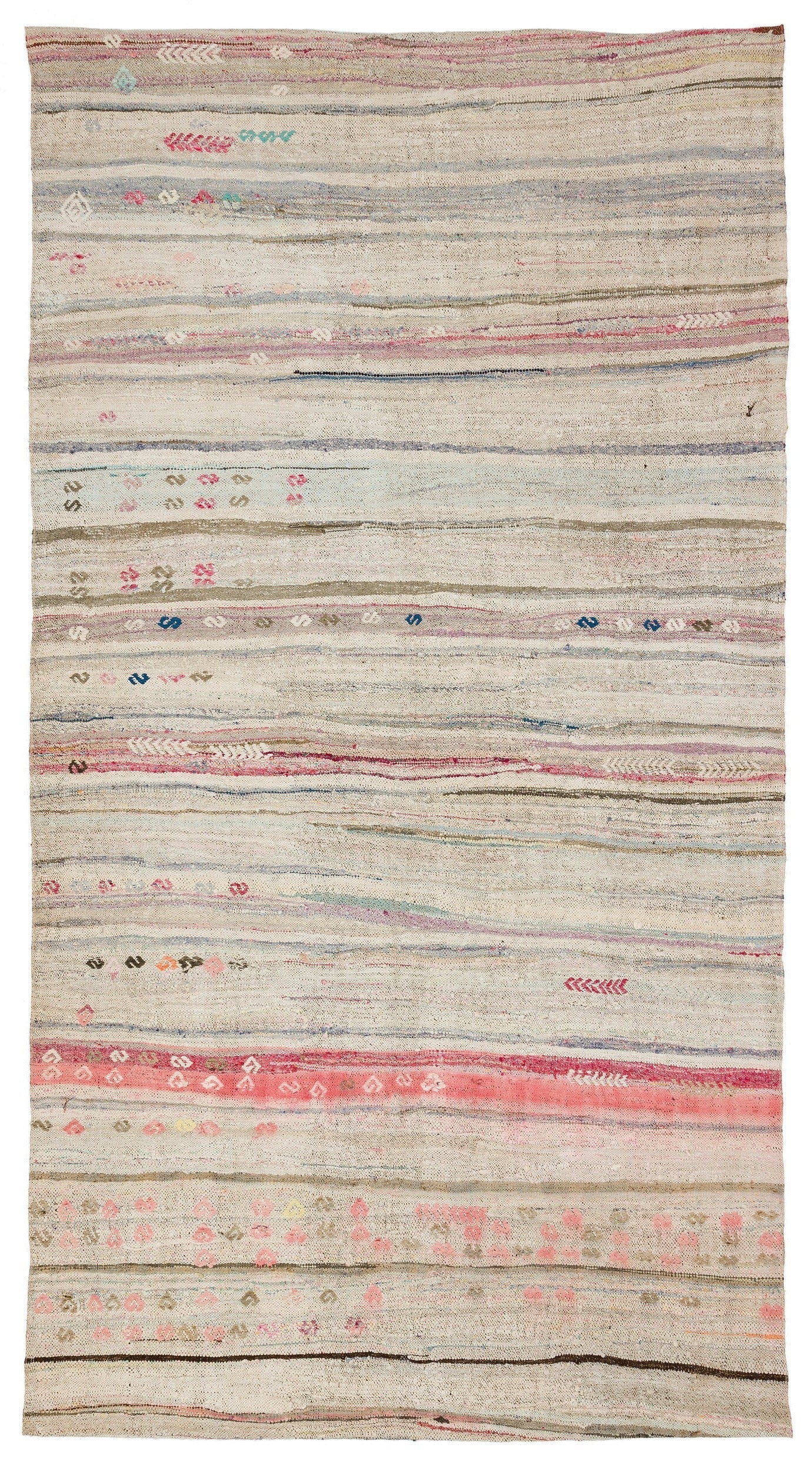Girit Beige Striped Wool Handmade Area Rug 4'10" x 8'11"