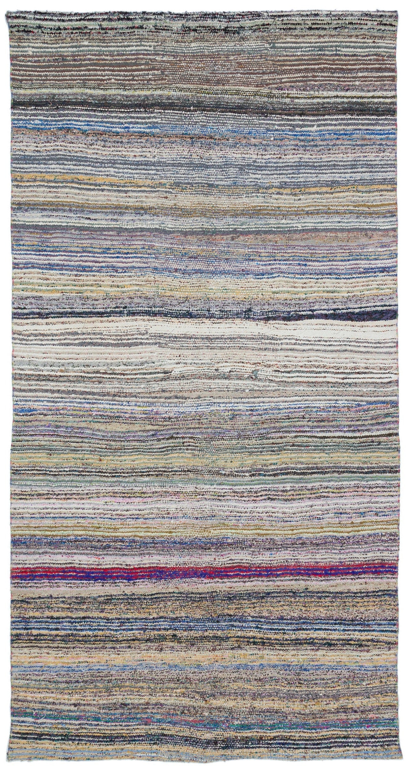 Girit Beige Striped Wool Handmade Area Rug 5'1" x 9'9"
