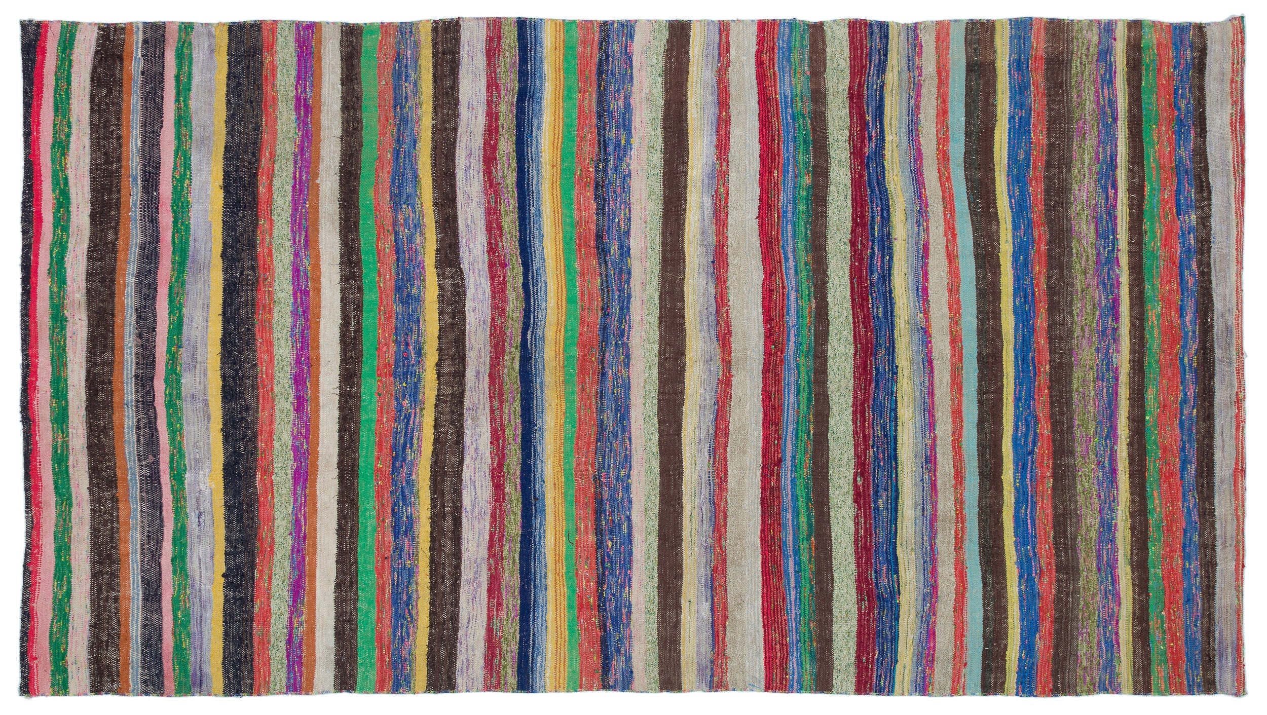 Girit Beige Striped Wool Handmade Area Rug 5'3" x 9'7"