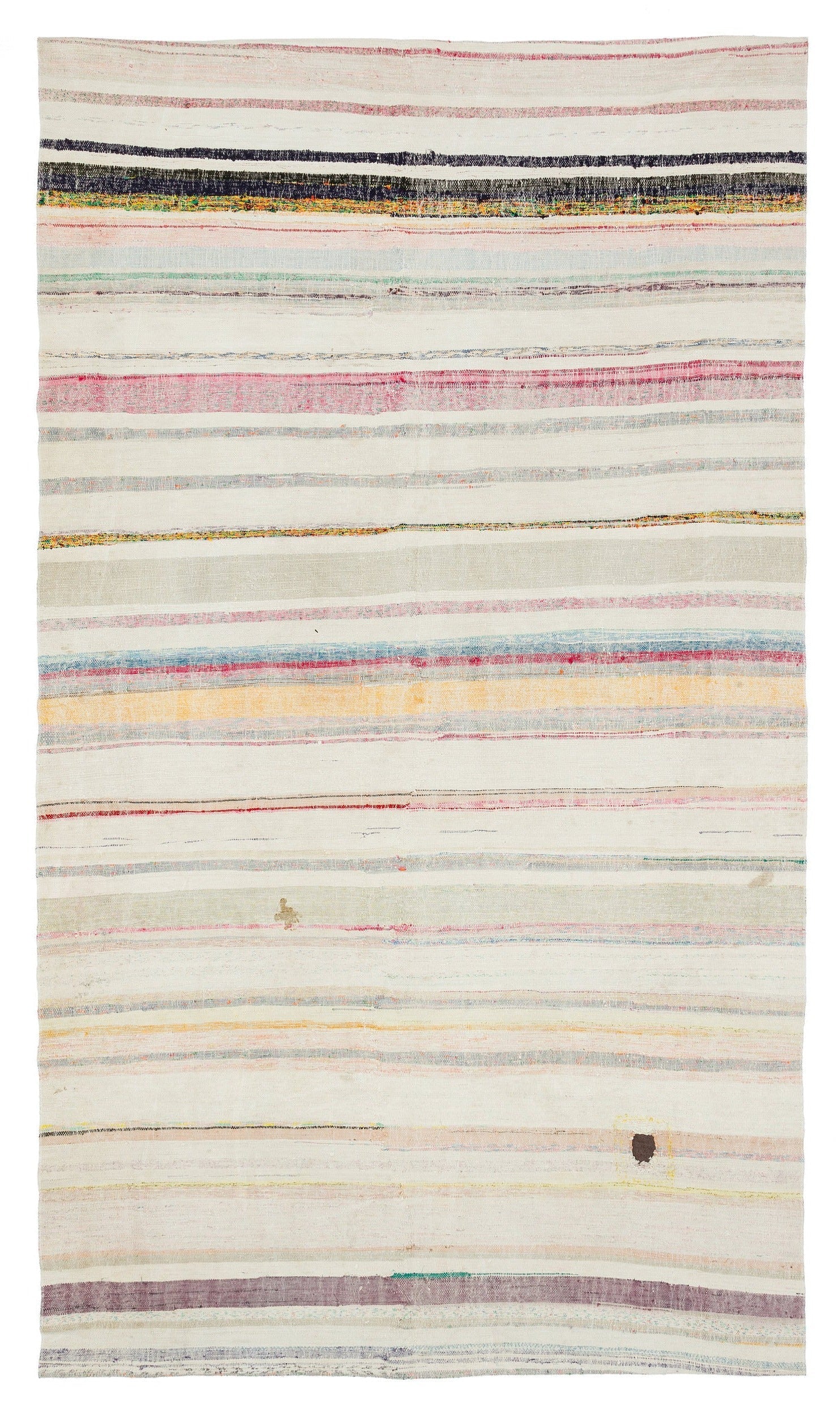 Girit Beige Striped Wool Handmade Area Rug 5'8" x 9'10"