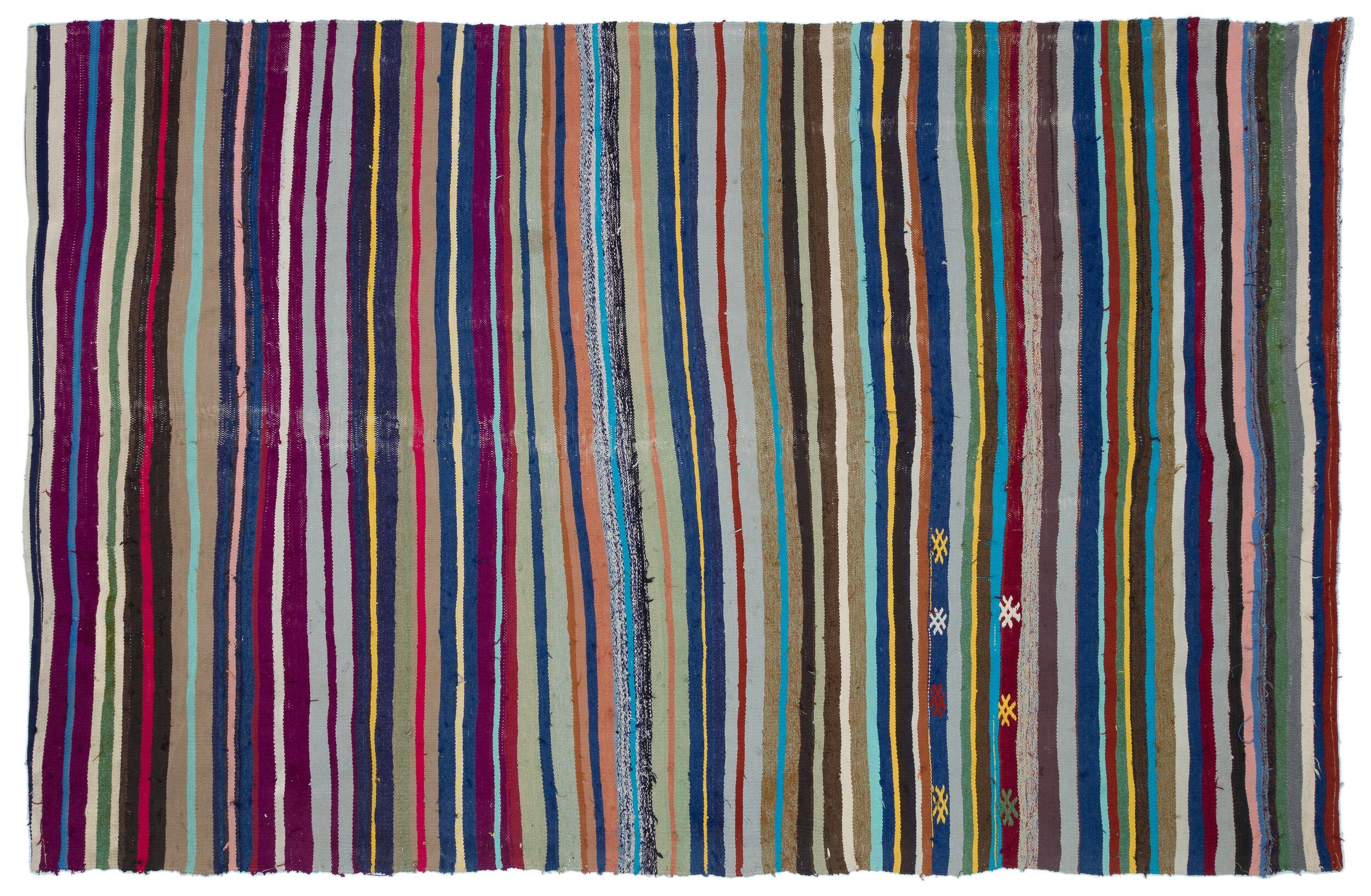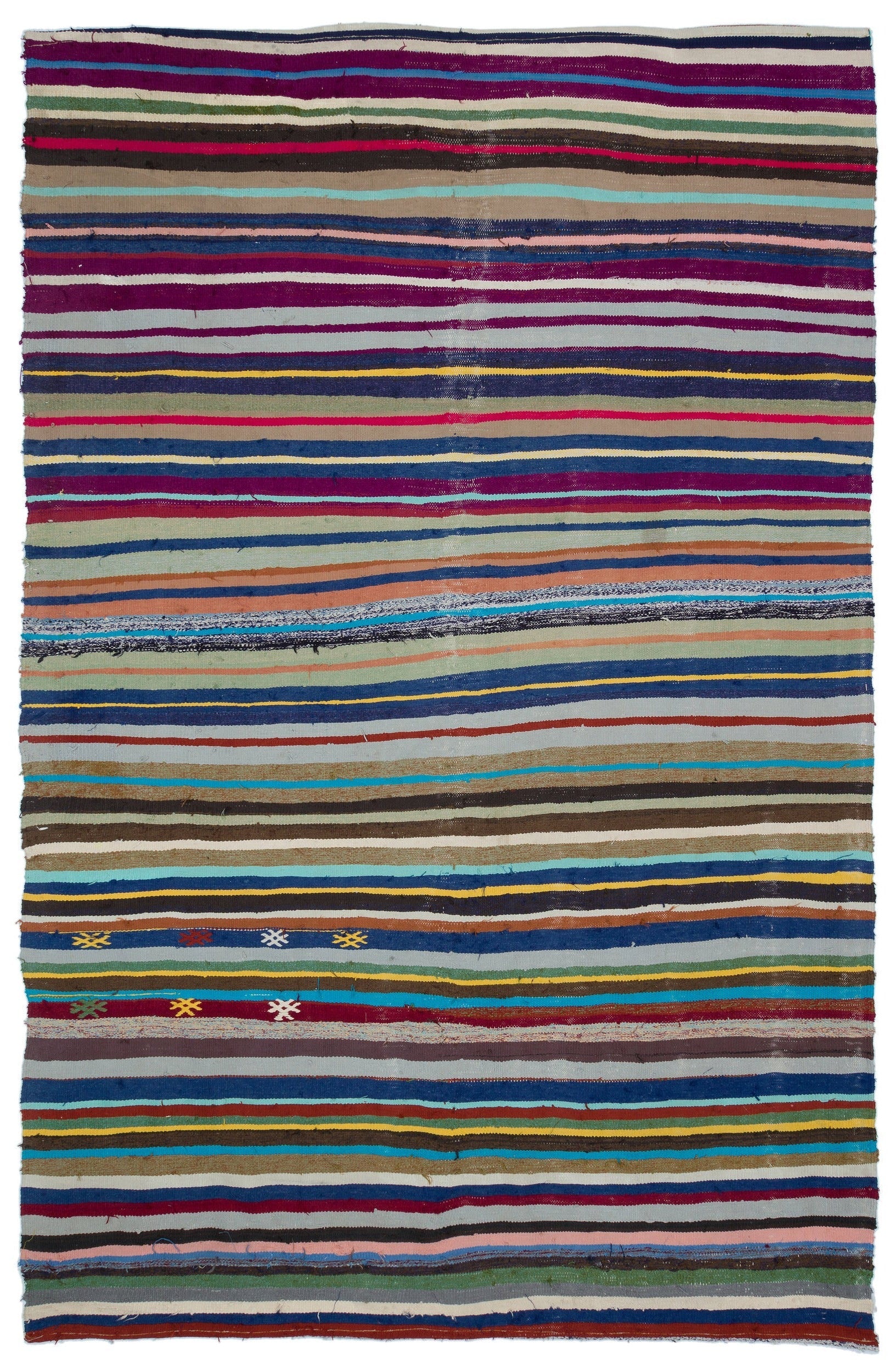 Girit Beige Striped Wool Handmade Area Rug 5'9" x 9'5"