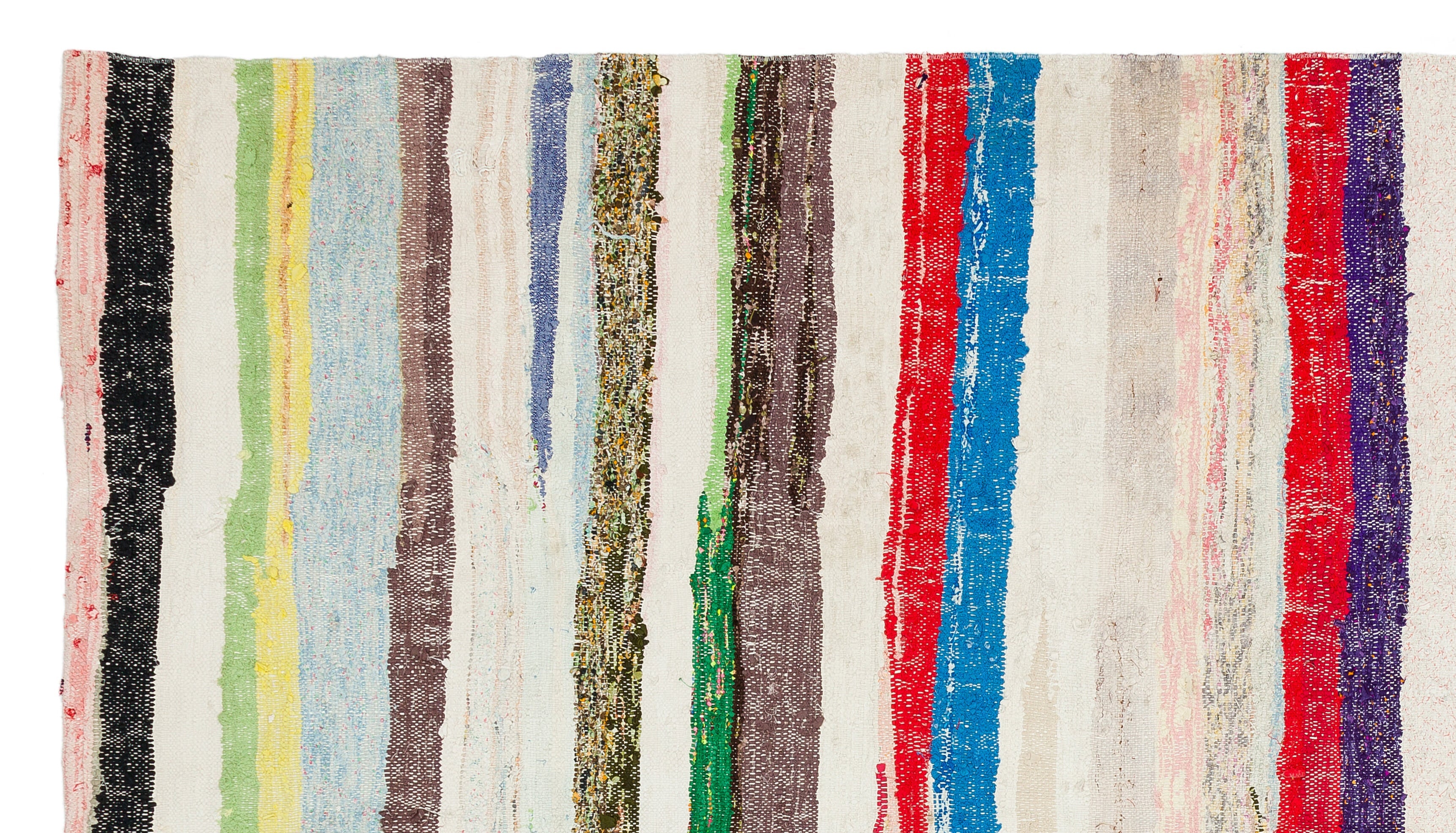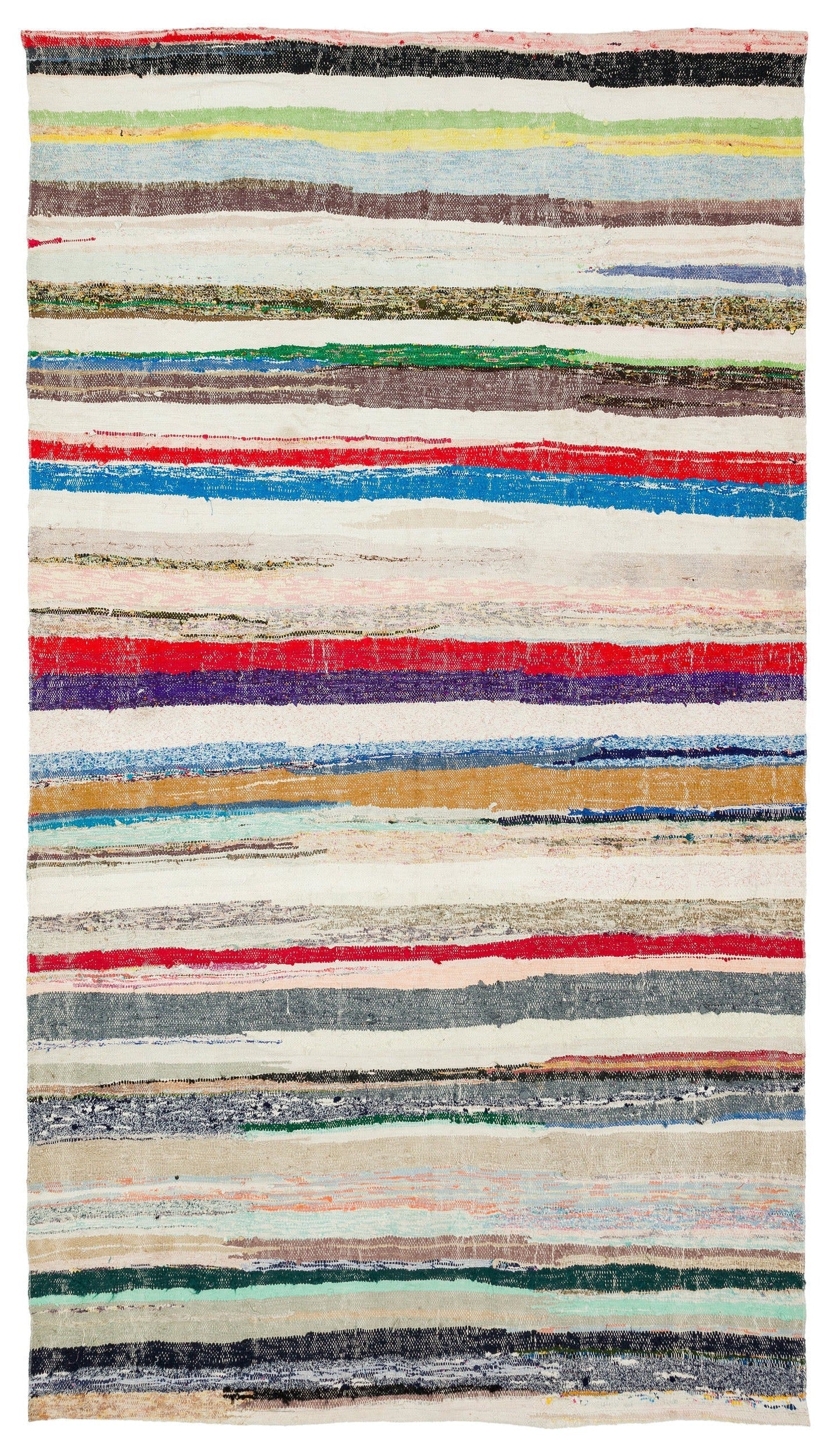 Girit Beige Striped Wool Handmade Area Rug 6'4" x 9'2"