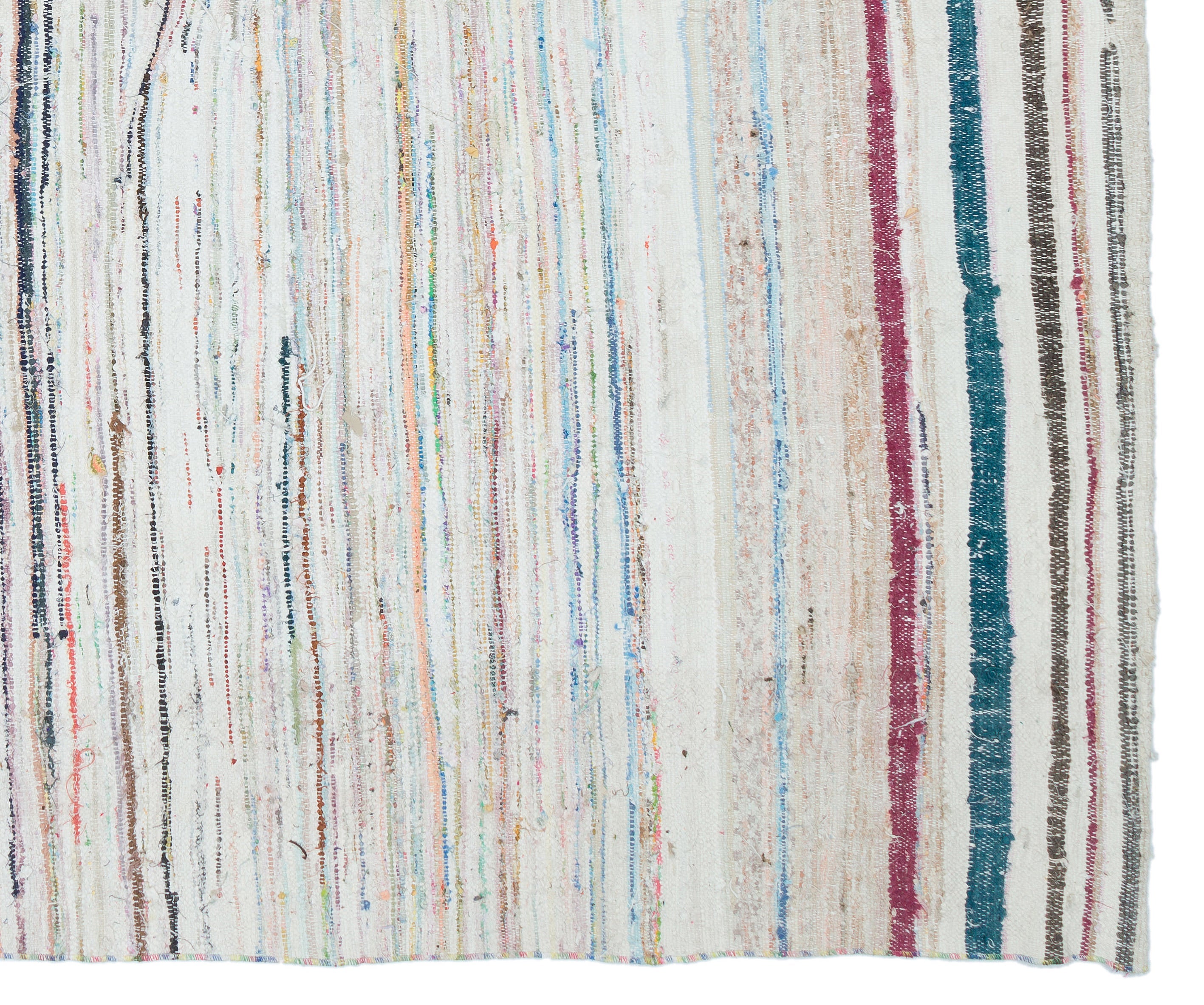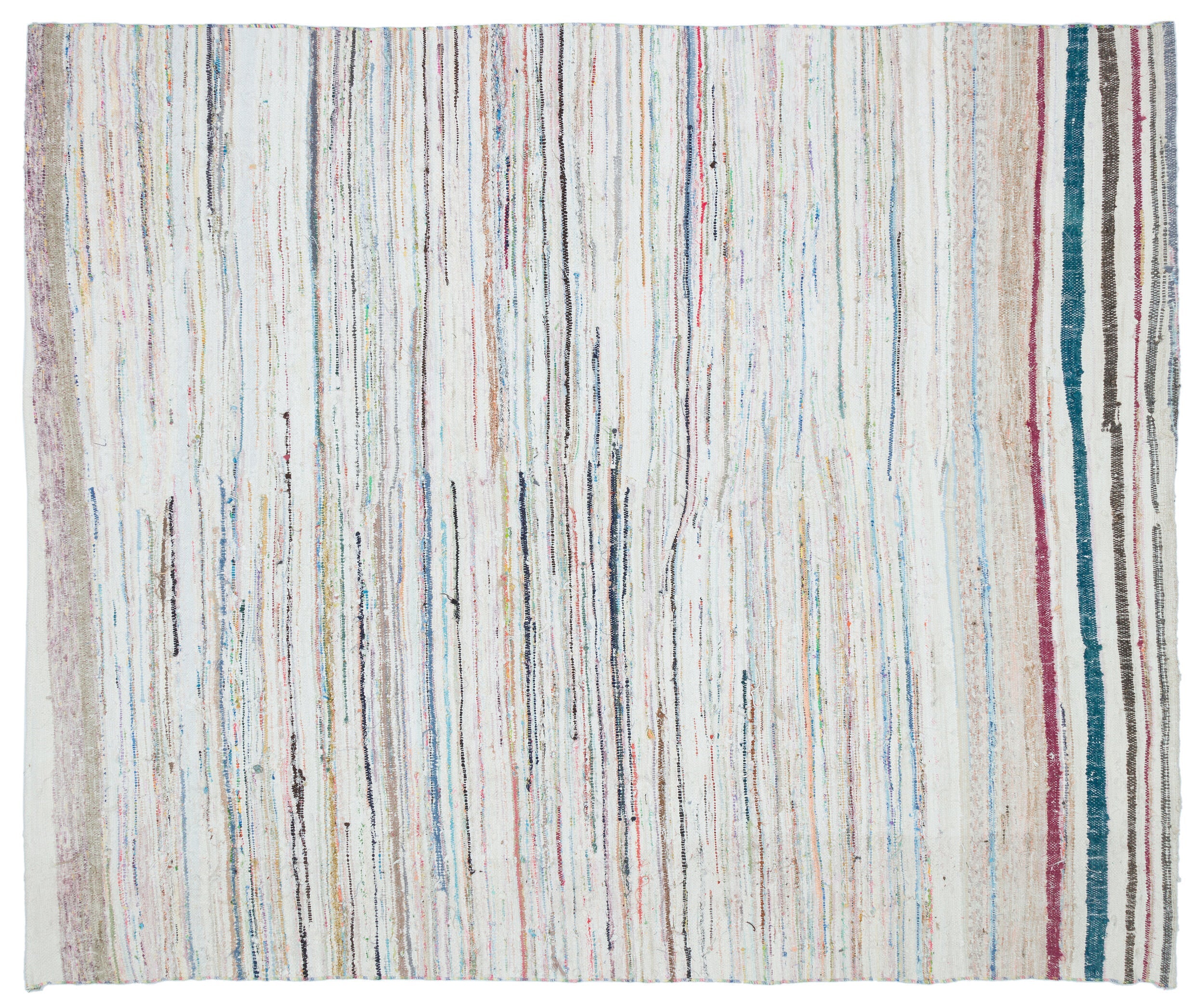 Girit Beige Striped Wool Handmade Area Rug 5'5" x 10'8"