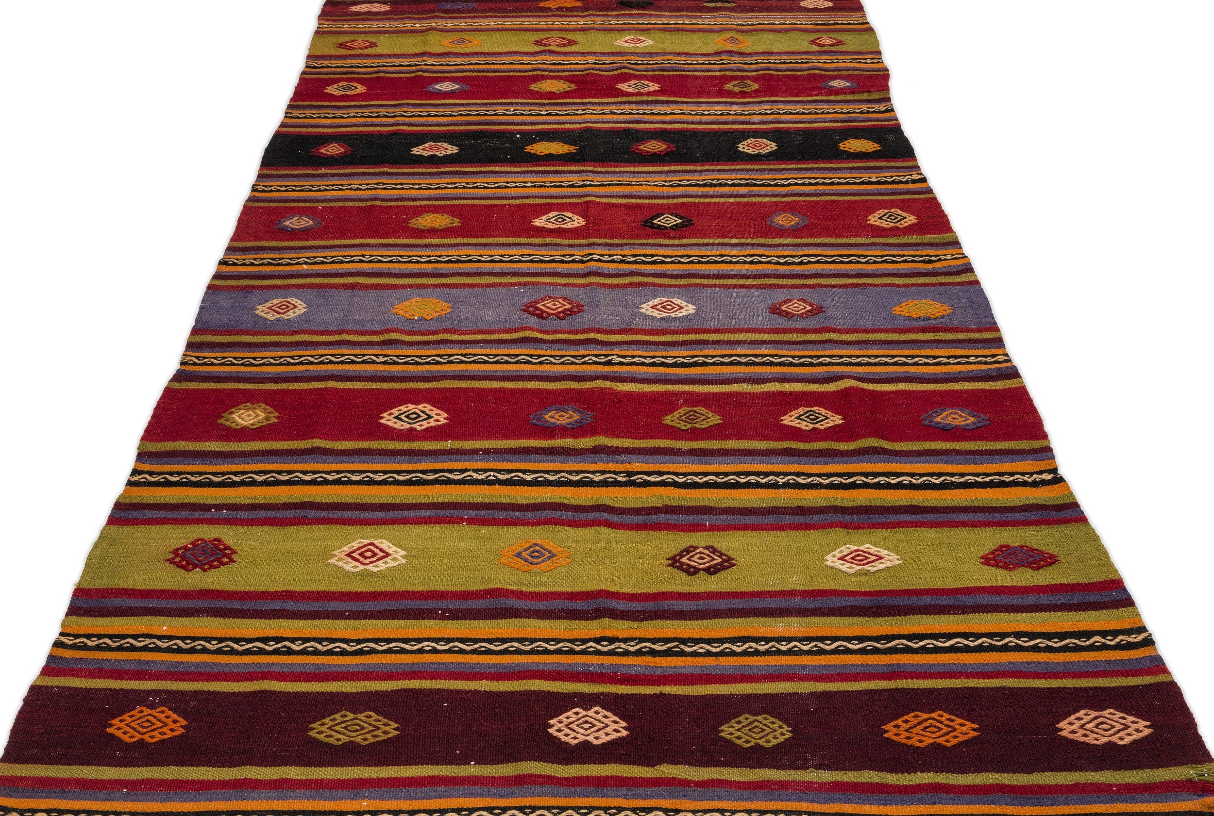Girit Multy Striped Wool Handmade Area Rug 5'0" x 10'7"