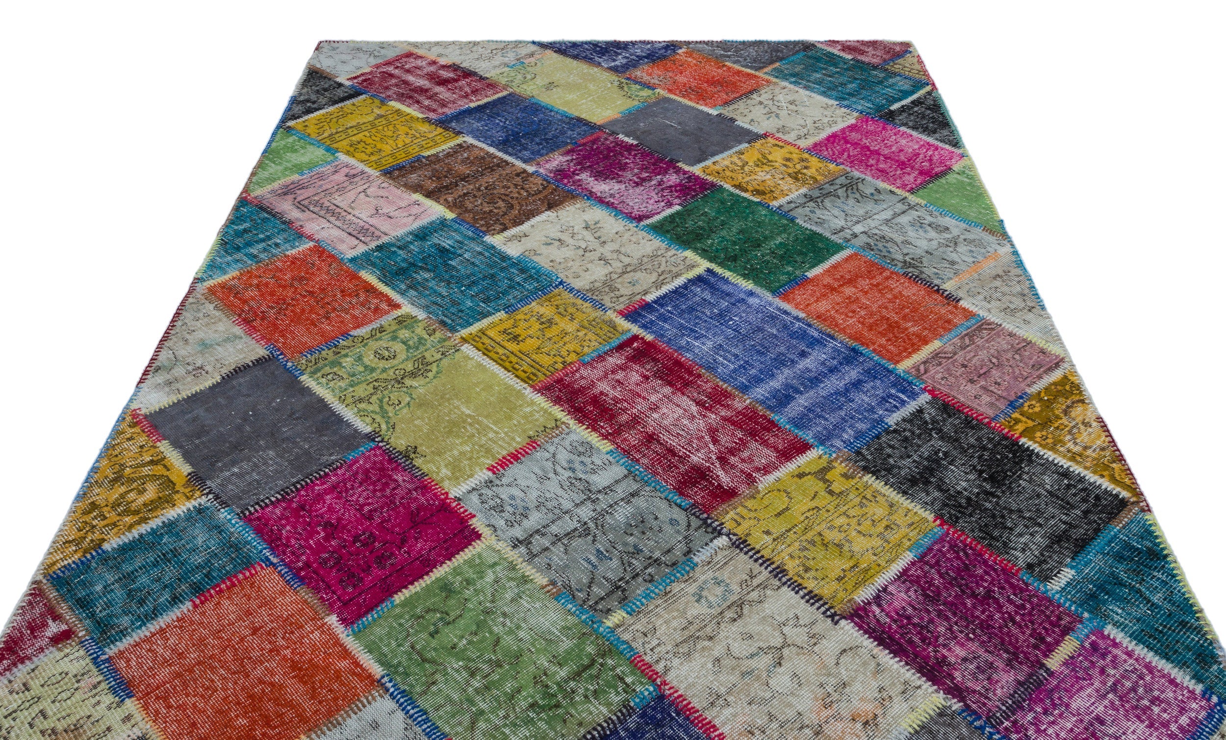 Iskece 26791 Beige Patchwork Wool Handmade Area Rug 6'4" x 9'5"
