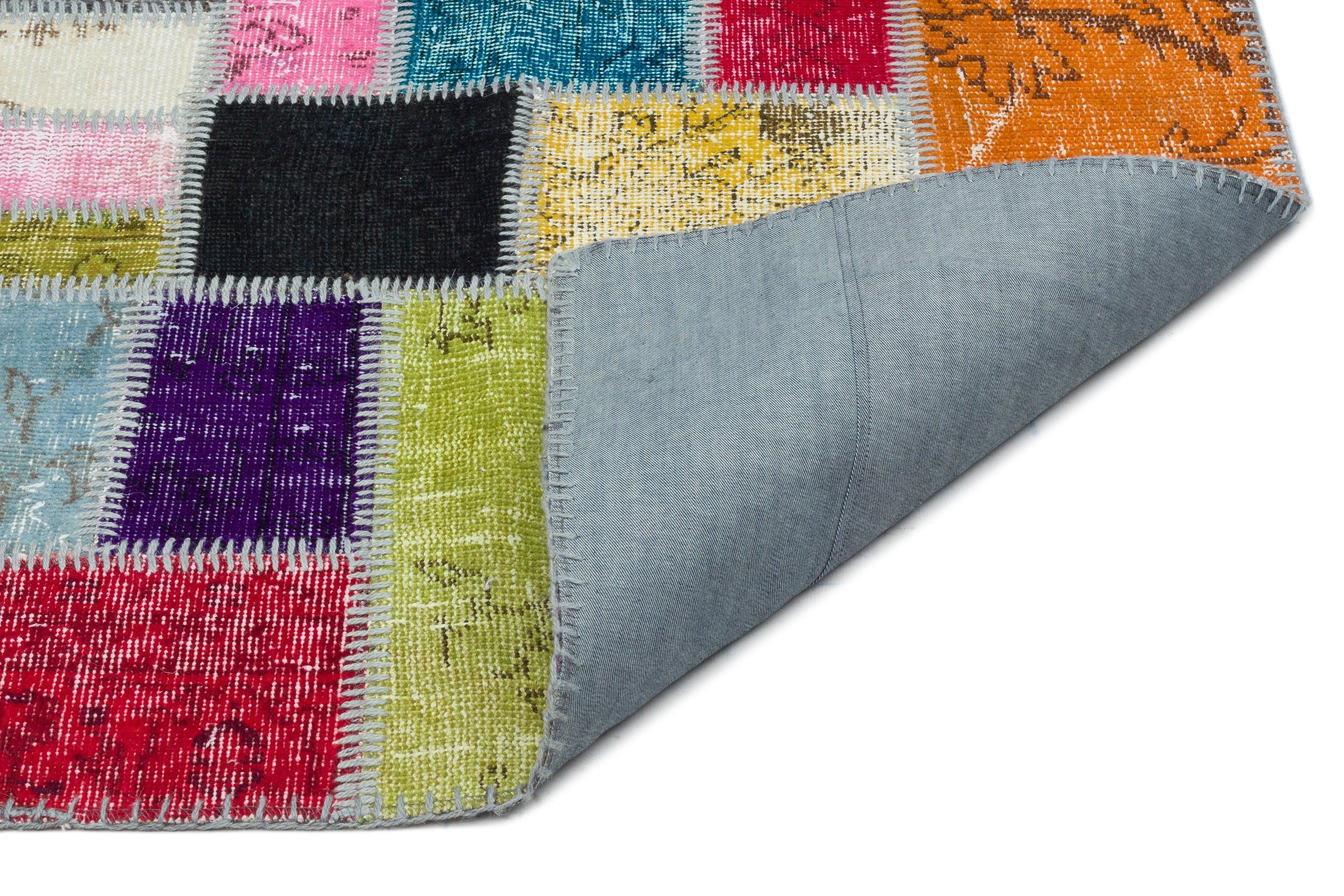 Iskece Beige Patchwork Wool Handmade Area Rug 4'10" x 8'11"