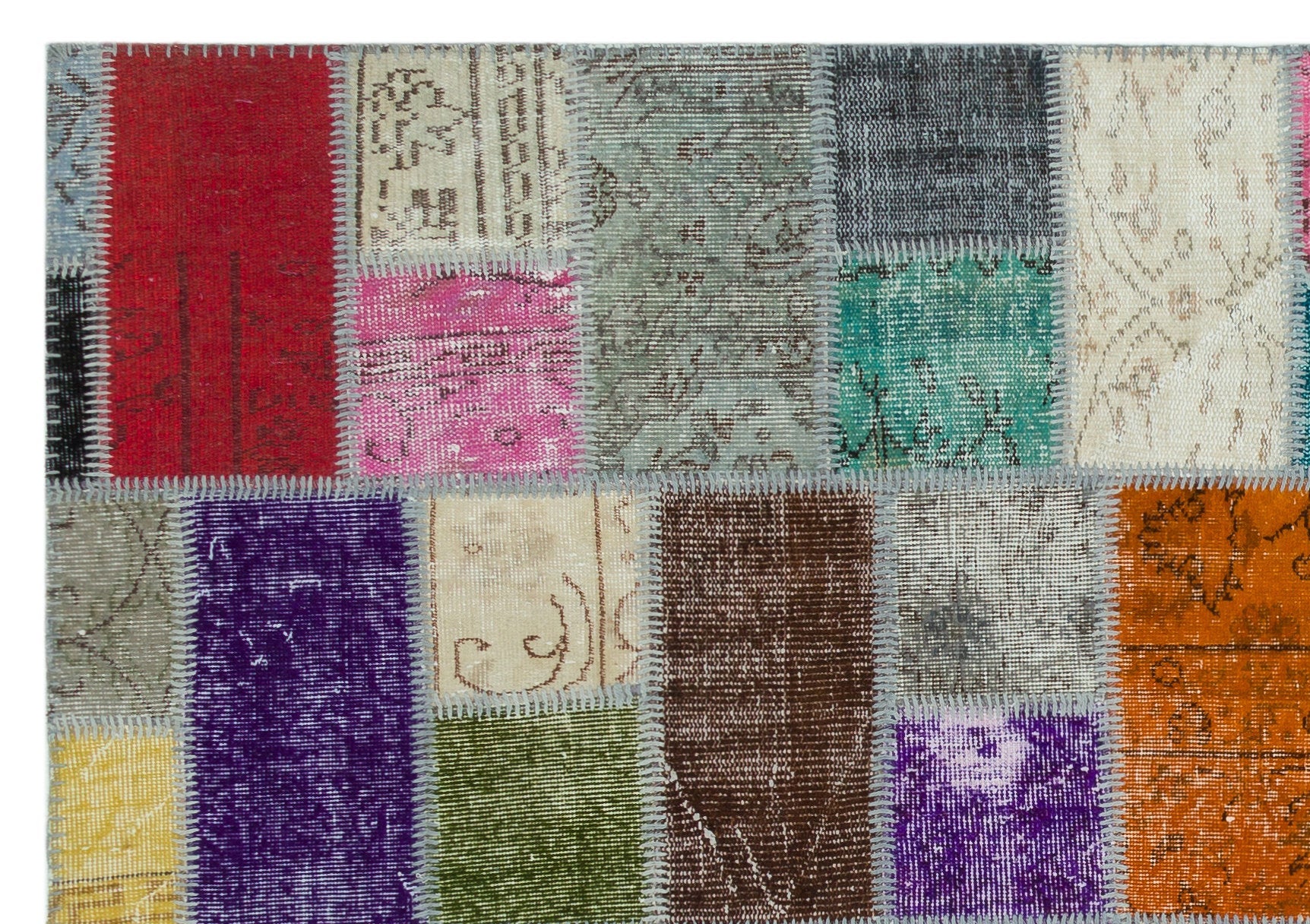 Iskece Beige Patchwork Wool Handmade Area Rug 4'10" x 9'4"