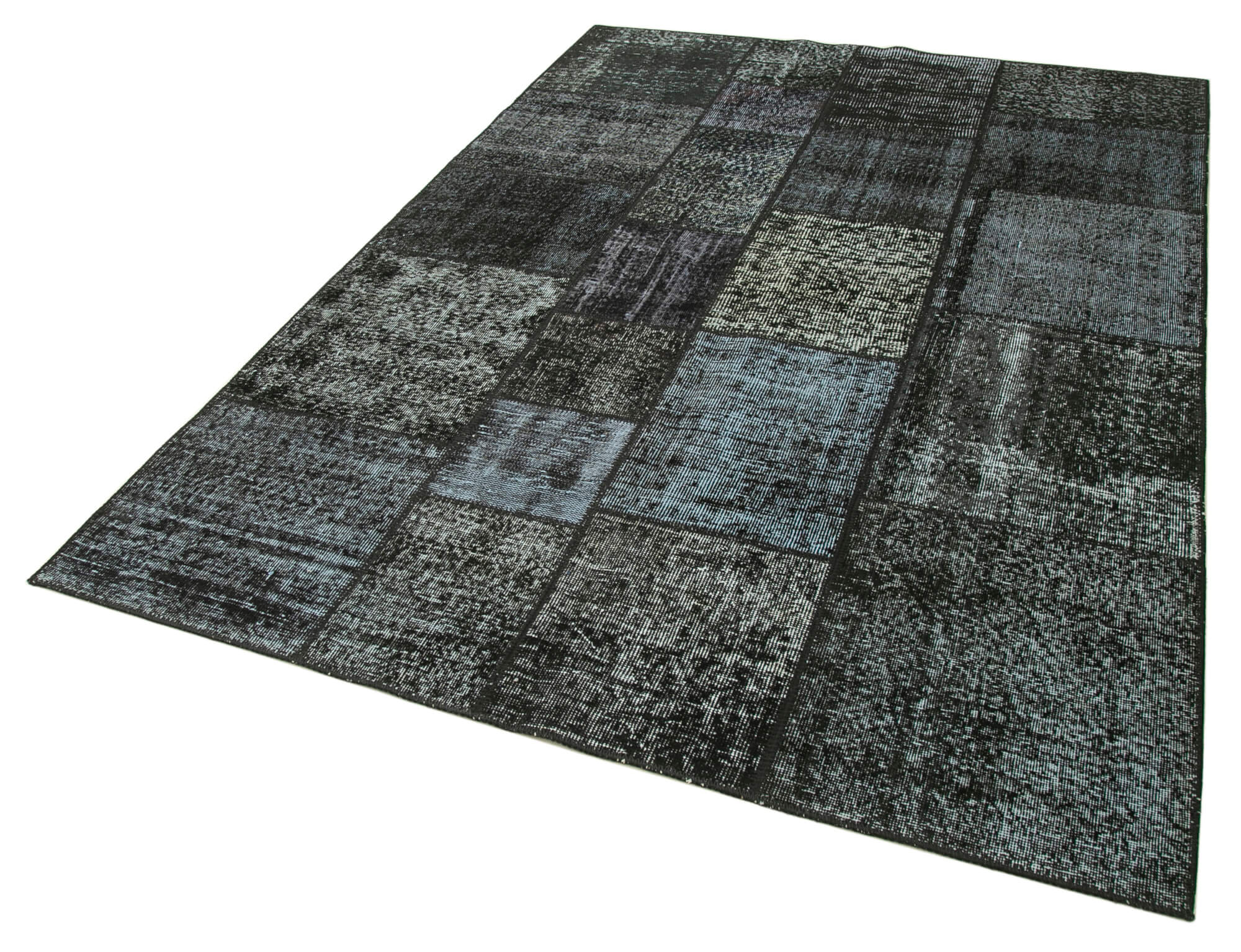 Kirk Yama Black Patchwork Cotton Wool Handmade Area Rug 5'7'' x 7'10''