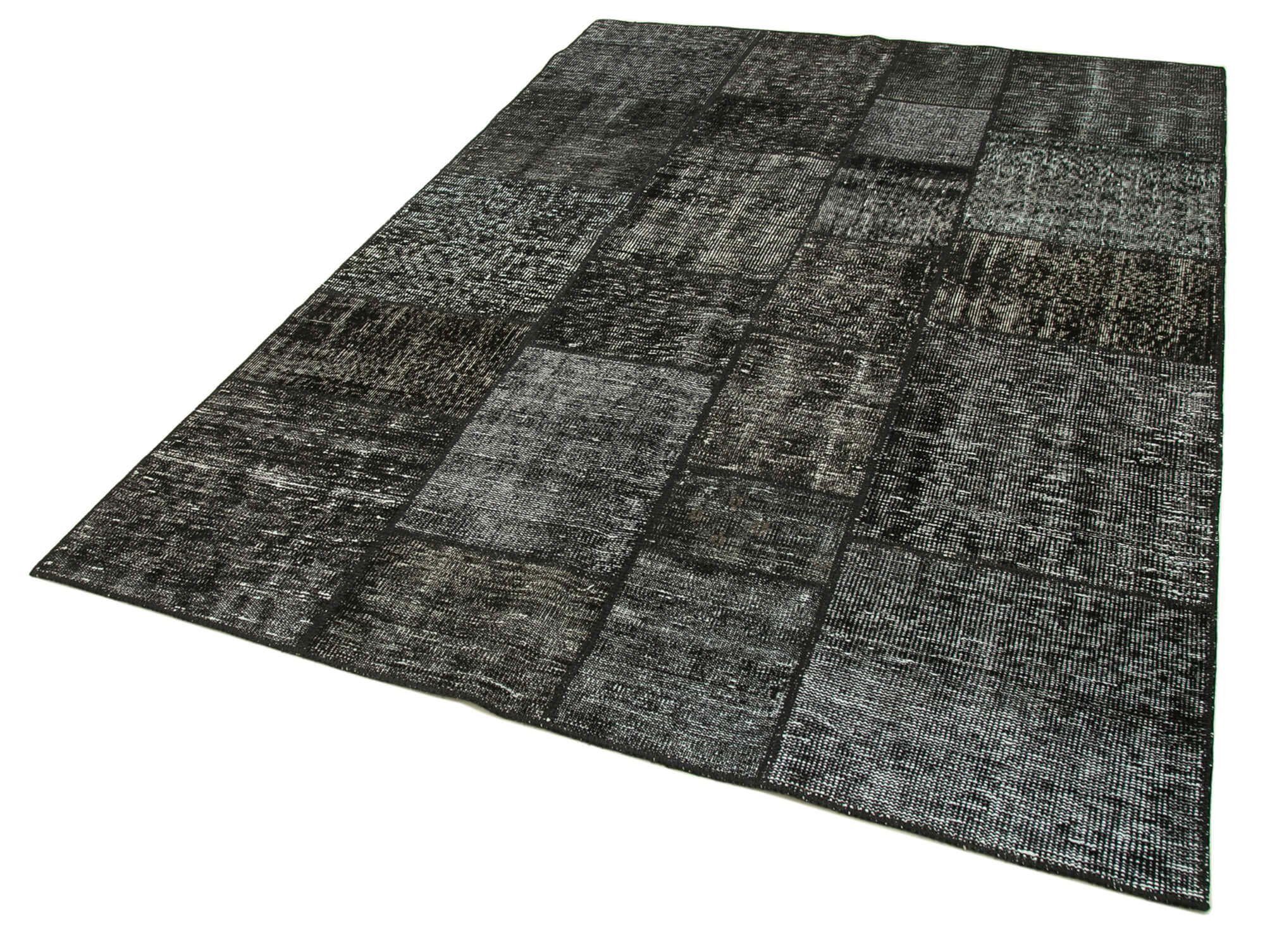 Kirk Yama Black Patchwork Cotton Wool Handmade Area Rug 5'7'' x 7'11''