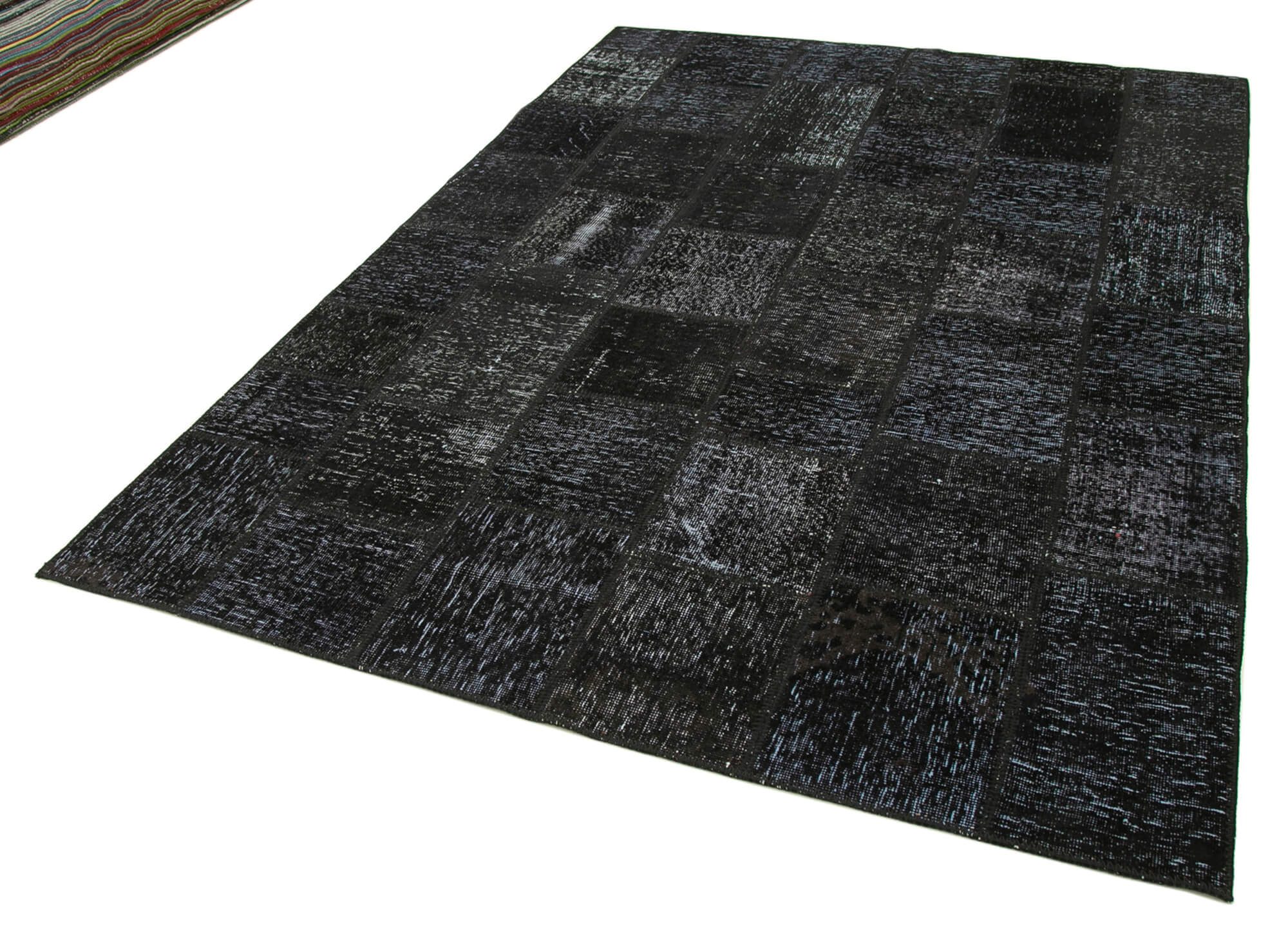 Kirk Yama Black Patchwork Cotton Wool Handmade Area Rug 5'8'' x 7'11''