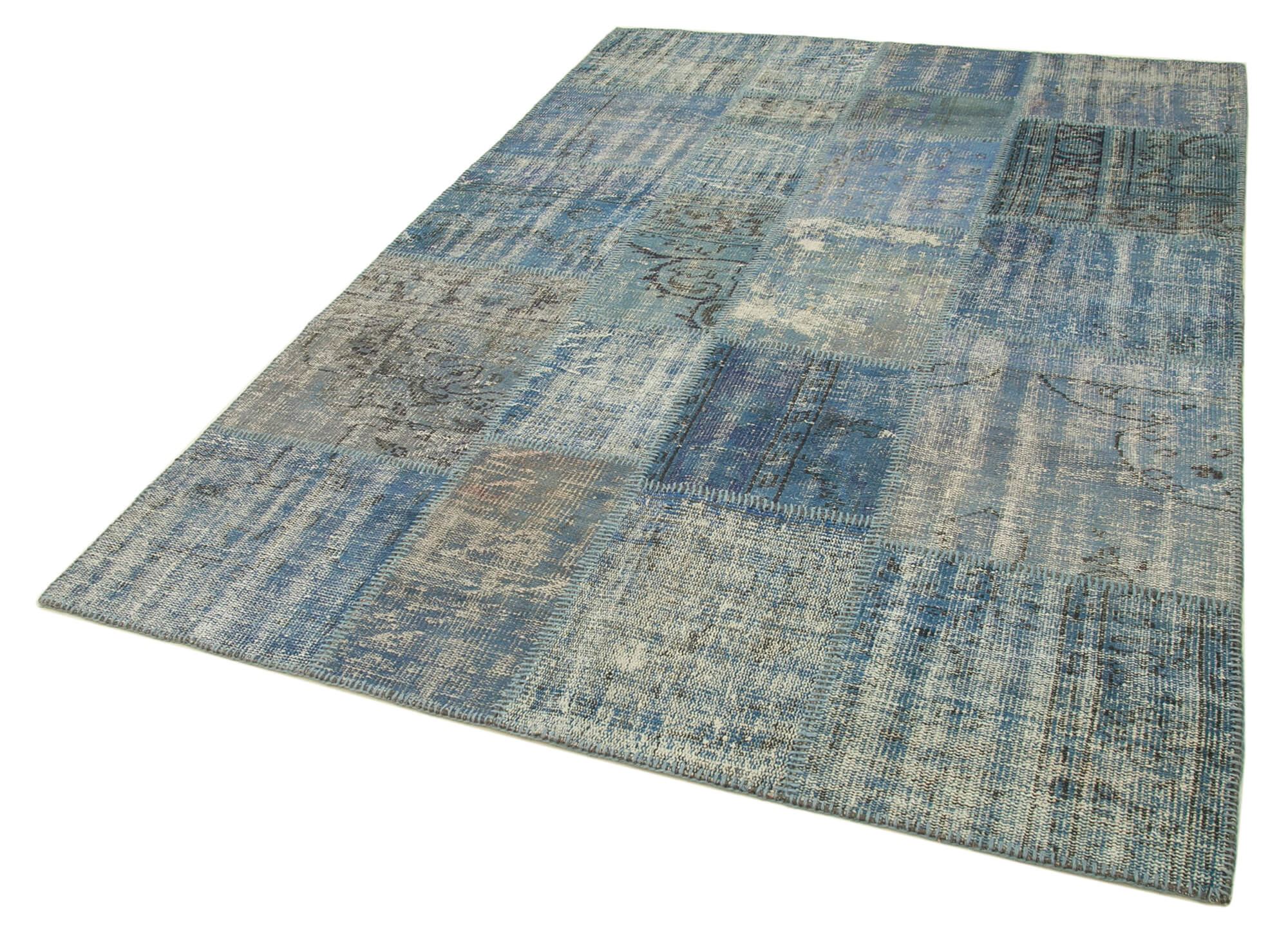 Kirk Yama Blue Patchwork Cotton Wool Handmade Area Rug 5'9'' x 8'1''