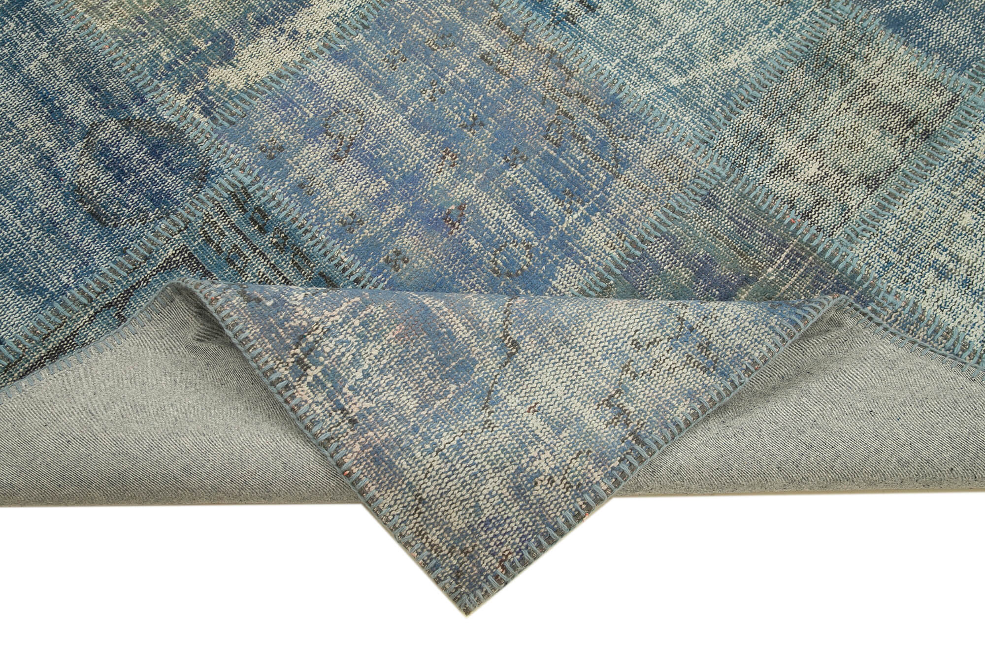 Each handmade area rug undergoes a meticulous cleaning process where original colors are carefully neutralized and refreshed with specialized washing techniques. This ensures the blue patchwork rug maintains vibrant shades while preserving its vintage charm. The blend of wool and cotton fibers creates a resilient yet soft texture that withstands daily foot traffic without sacrificing comfort. Tested for durability, this handcrafted floor covering promises years of use backed by Agacan's commitment to quality.